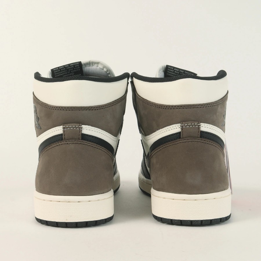 - 1985年のオリジナルモデルを忠実に再現したOG仕様の“AIR JORDAN 1(エアジョーダン1)”です。こちらはダークモカカラーのヌバック素材が特徴的な一足になります。