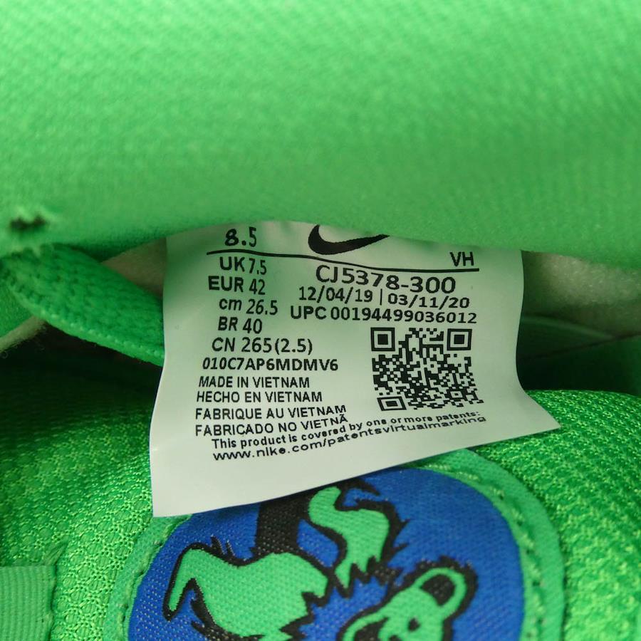 | 商品名 | CJ5378-300 Grateful Dead × Nike SB Dunk Low 【フェイクバスターズ鑑定済】 グレイトフルデッドベアーズ ダンク "Green Bear" グリーンベア スニーカー |