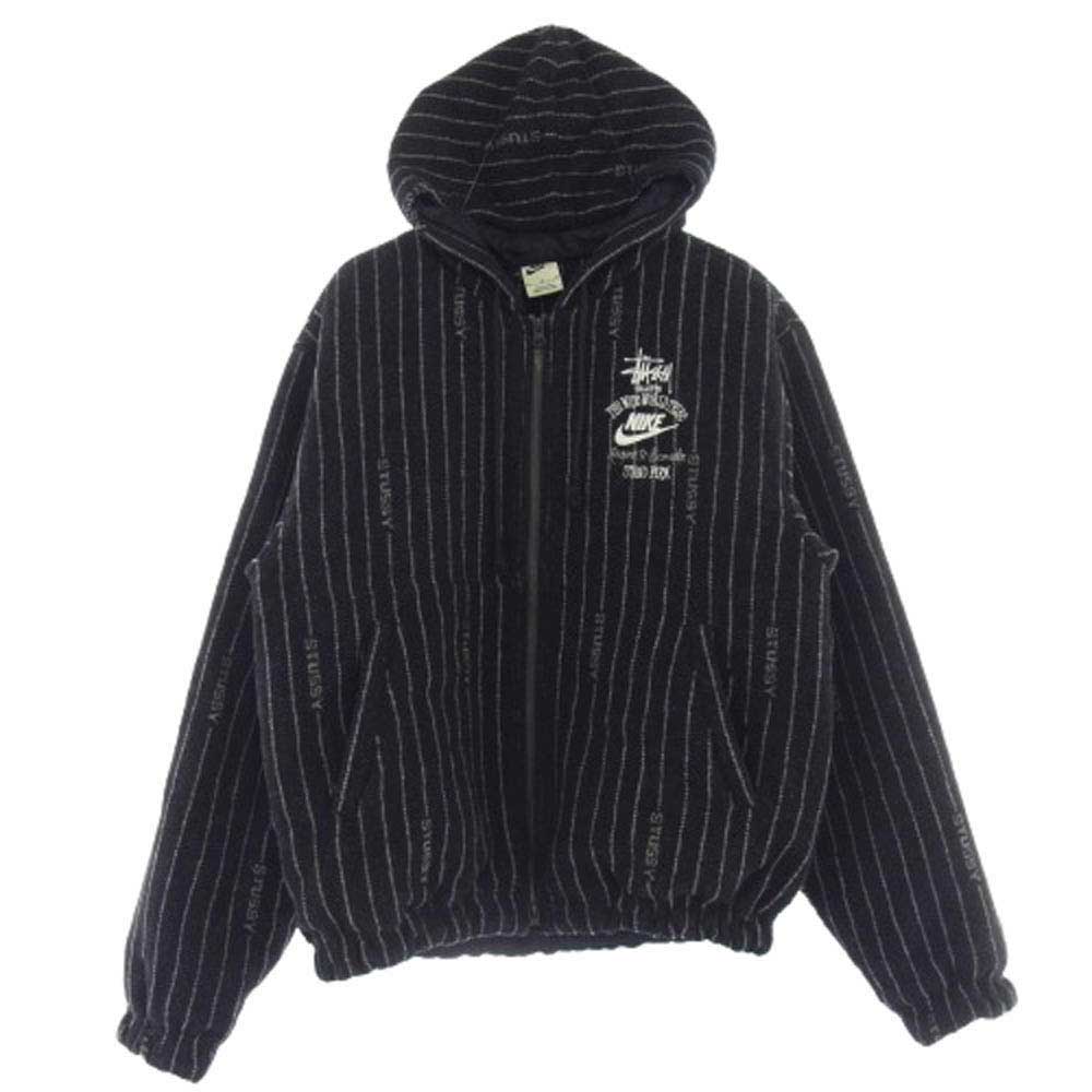 ブラック系【モデル】× Stussy Striped Wool Jacket ステューシー ストライプ ウール ジャケット フーディ