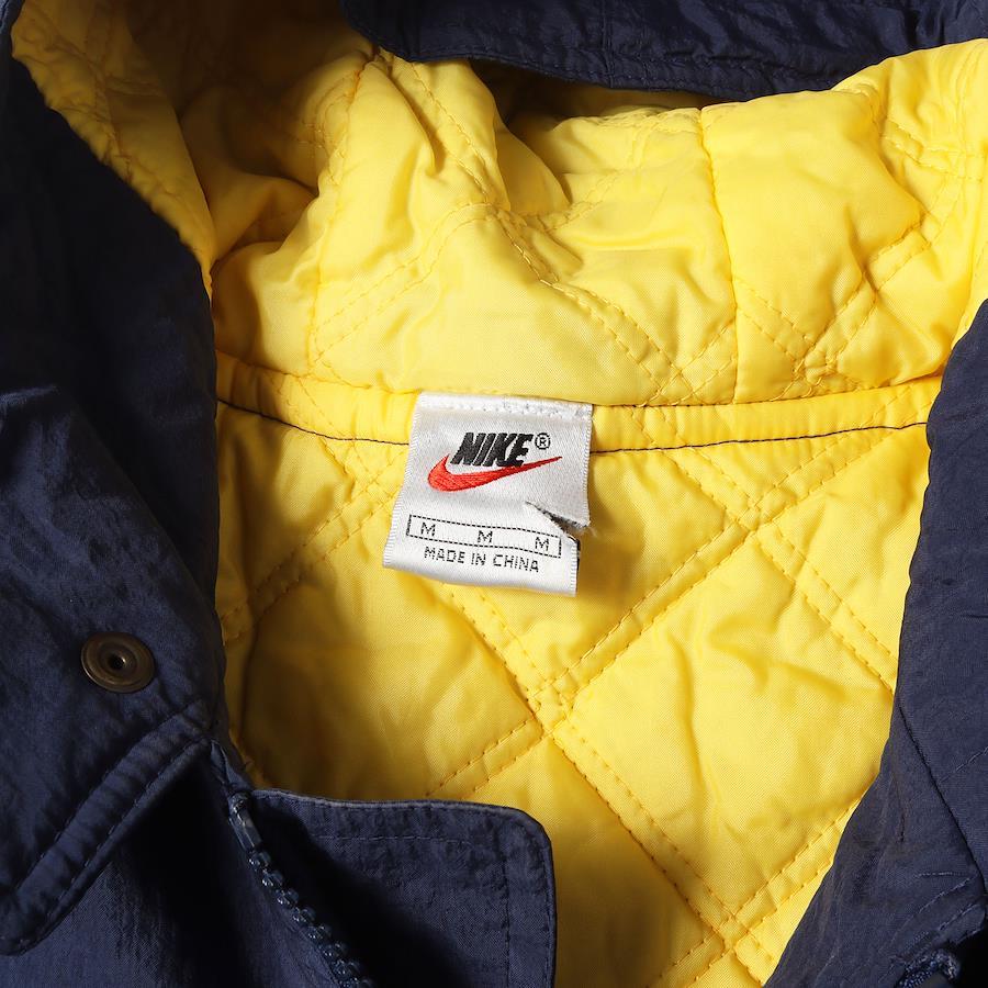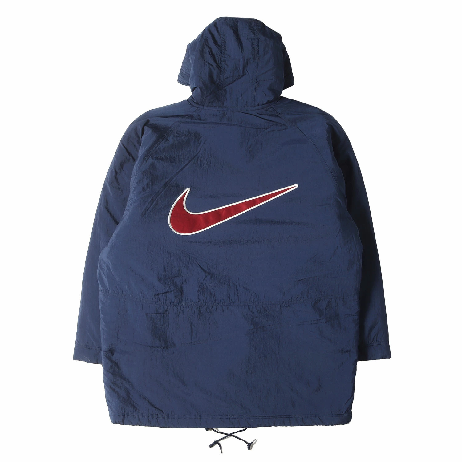 NIKE / Vintage Nike Coat, Size: M / 90s Swoosh Logo Patch Nylon Bench Coat / White Tag / Navy / Outerwear Jacket [Men's] [Pre-owned] [K4408]