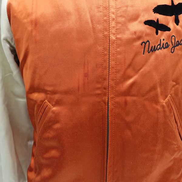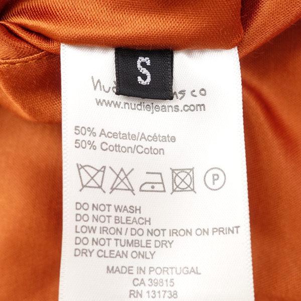 ・メーカー :Nudie Jeans / ヌーディージーンズ・サイズ :表記サイズ:S,肩幅 (約cm):44,着丈 (約cm):68,身幅 (約cm):52,袖丈 (約cm):56,・色(柄)の系統:オレンジ ベージュ ブラック・デザイン :(メンズ)アウター/ジャンパー・ブルゾン・素材 :アセテート50% 綿50綿