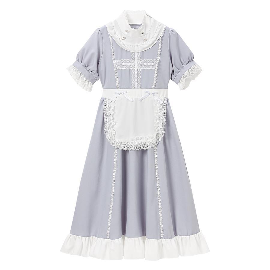 十字架レースがかわいいナースメイドなワンピース♪【デザイン】前掛けエプロンを付けているようなワンピースが登場♪後ろのリボンは取り外し可能で、リボンの足には十字架の刺繍がポイント。後ろウエストゴム入りで、左肩と左脇のファスナーを開けて着脱可能です。種類の違うレースがふんだんにあしらわれた上品な一枚です。。写真映え間違いなしなワンピースです。【素材】しっかりとした素材です。本体に裏地付き。【コーディネート】1着で主役級のかわいいワンピース♪ヘッドドレスやレースソックスなどを併せてロマンチックに着用するのがおすすめです。《透け感》なし 《生地の厚さ》普通 《裏地》あり 《伸縮性》なし《生産国》中国