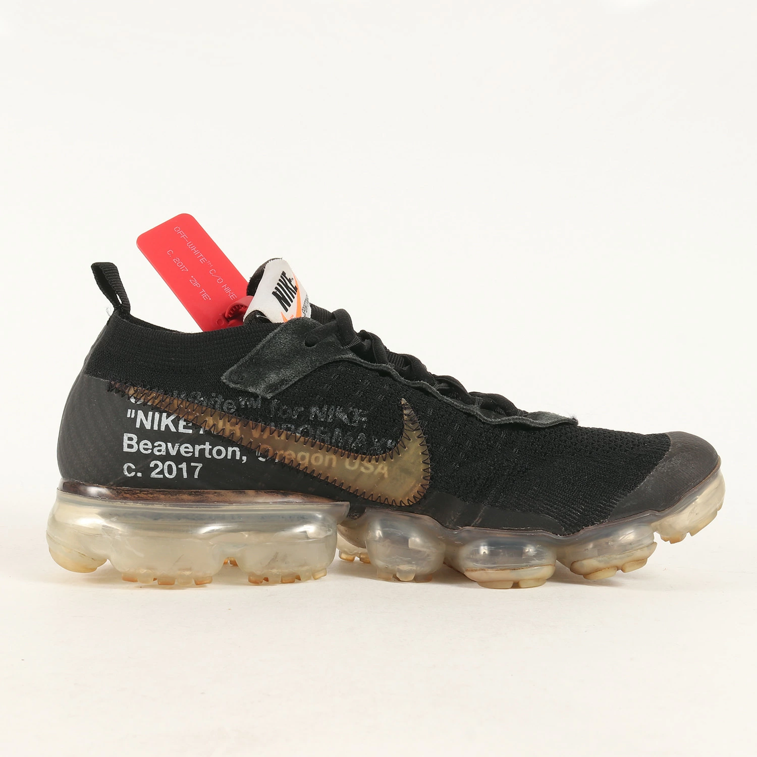 - 全世界で話題となった“NIKE(ナイキ)”とのコラボシリーズ“THE 10”のアイテムです。モデルには人気の高いハイテクランニングシューズ“AIR VAPORMAX(エア ヴェイパーマックス)”を採用し、デザイナー“VIRGIL ABLOH(ヴァージル・アブロー)”による独自の世界観を反映させて再構築した一足になります。クリアパーツのスウッシュやインサイドのロゴプリントなど今までにない斬新なデザインで仕上げたスペシャルモデルです。