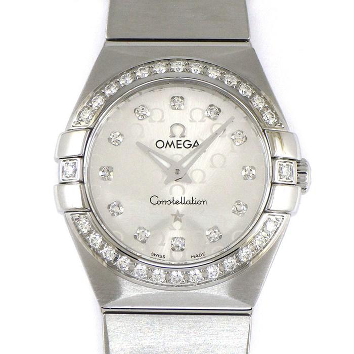 ■商品名OMEGA 腕時計 コンステレーション 123.15.24.60.52.001 夜光針 12ポイント ダイヤインデックス ダイヤベゼル ロゴマーク サンレイ シルバー文字盤 SS クオーツアナログ 【箱・保付き】 【中古】