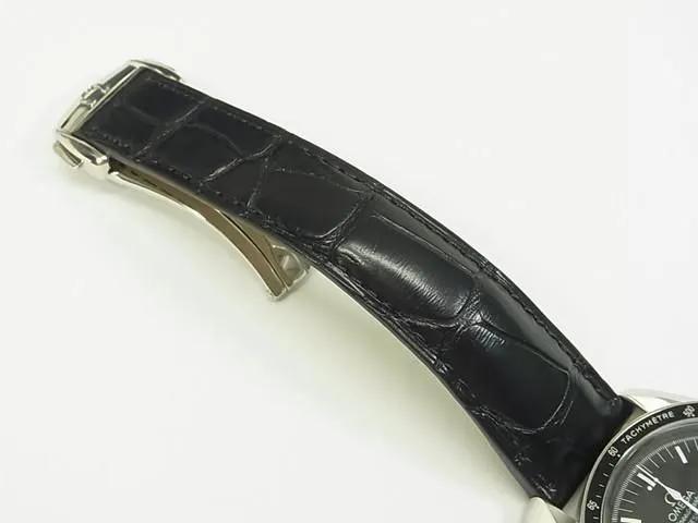 The Speedmaster Moonwatch Professional combines a reinforced plastic crystal with a 42mm stainless steel case and black leather strap.