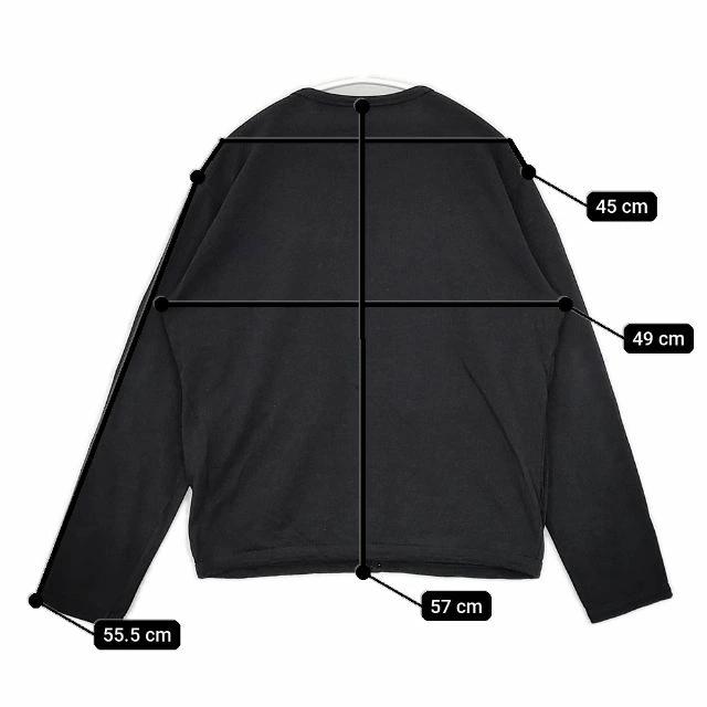 | 実寸サイズ | 肩幅:約45cm 着丈:約57cm 身幅:約49cm 袖丈:約55.5cm ※採寸画像がある商品はハンガーに吊るした状態での計測のため、平置きでの採寸とは差が生じる場合がございます。平置きでの実寸サイズをご希望の場合は、ご購入前に必ずご質問ください。 ※記載以外のサイズが合わないことを理由とした返品はできませんので、 記載部分以外で実寸サイズの気になる箇所があれば必ず購入前にご質問ください。 |