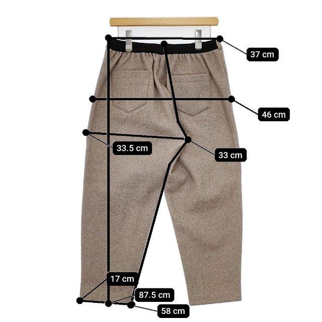 | 実寸サイズ | 総丈:約87.5cm ウエスト:約37cm ウエスト最長:約45cm 股上:約33cm 股下:約58cm ヒップ:約46cm ワタリ幅:約33.5cm 裾幅:約17cm ※採寸画像がある商品はハンガーに吊るした状態での計測のため、平置きでの採寸とは差が生じる場合がございます。平置きでの実寸サイズをご希望の場合は、ご購入前に必ずご質問ください。 ※記載以外のサイズが合わないことを理由とした返品はできませんので、 記載部分以外で実寸サイズの気になる箇所があれば必ず購入前にご質問ください。 |