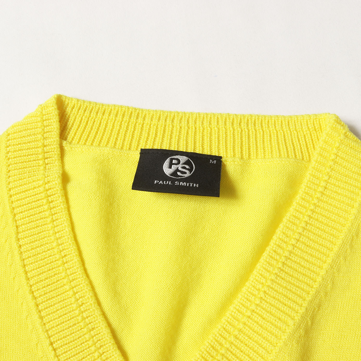 Paul Smith Yellow Knit, Size M | High-Gauge Wool V-Neck Knit (172401 240R) | Men's Pullover Sweater (Pre-owned) [K4619]