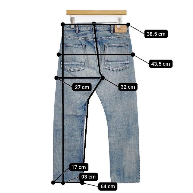 | 実寸サイズ | 総丈:約93cm ウエスト:約38.5cm 股上:約32cm 股下:約64cm ヒップ:約43.5cm ワタリ幅:約27cm 裾幅:約17cm ※採寸画像がある商品はハンガーに吊るした状態での計測のため、平置きでの採寸とは差が生じる場合がございます。平置きでの実寸サイズをご希望の場合は、ご購入前に必ずご質問ください。 ※記載以外のサイズが合わないことを理由とした返品はできませんので、 記載部分以外で実寸サイズの気になる箇所があれば必ず購入前にご質問ください。 |
