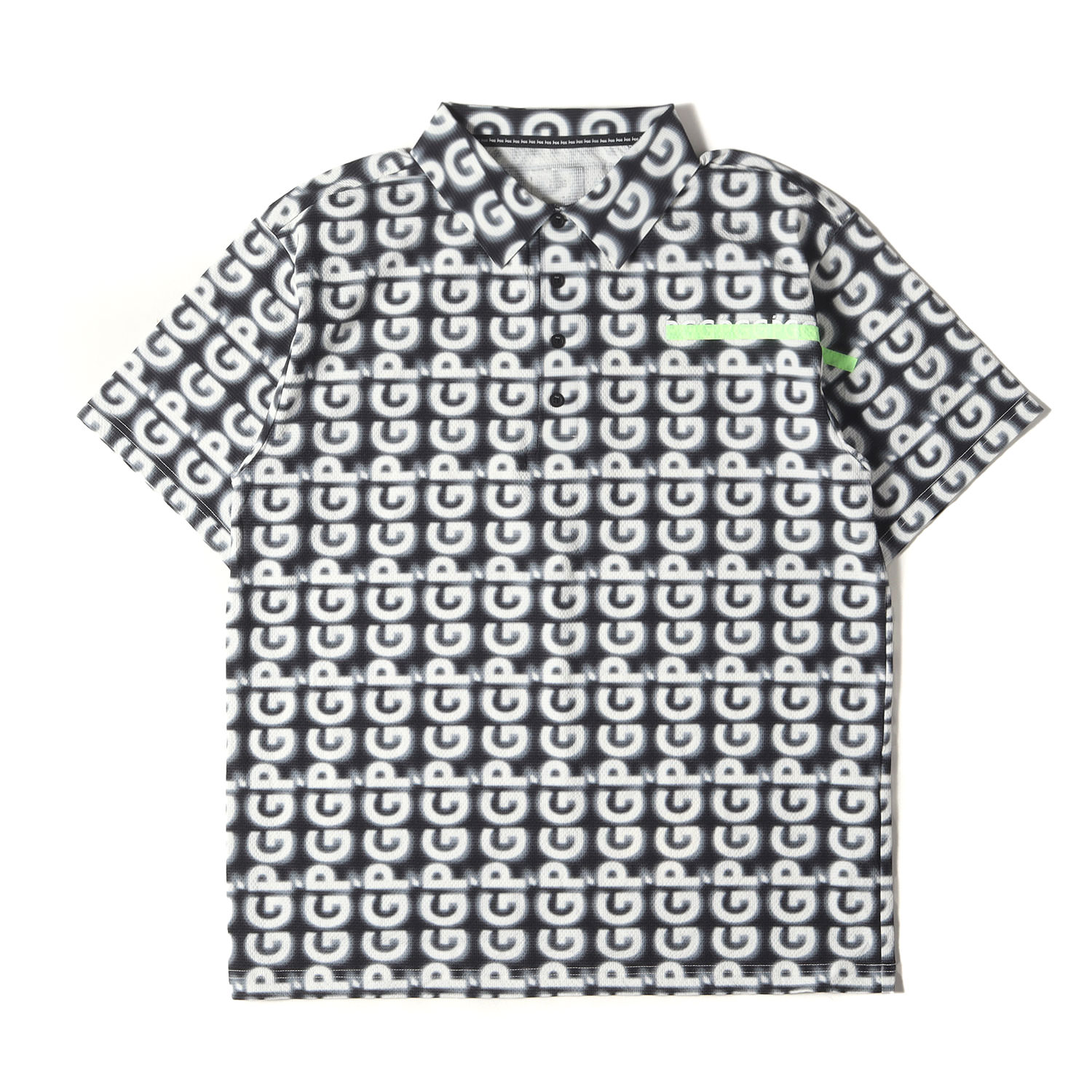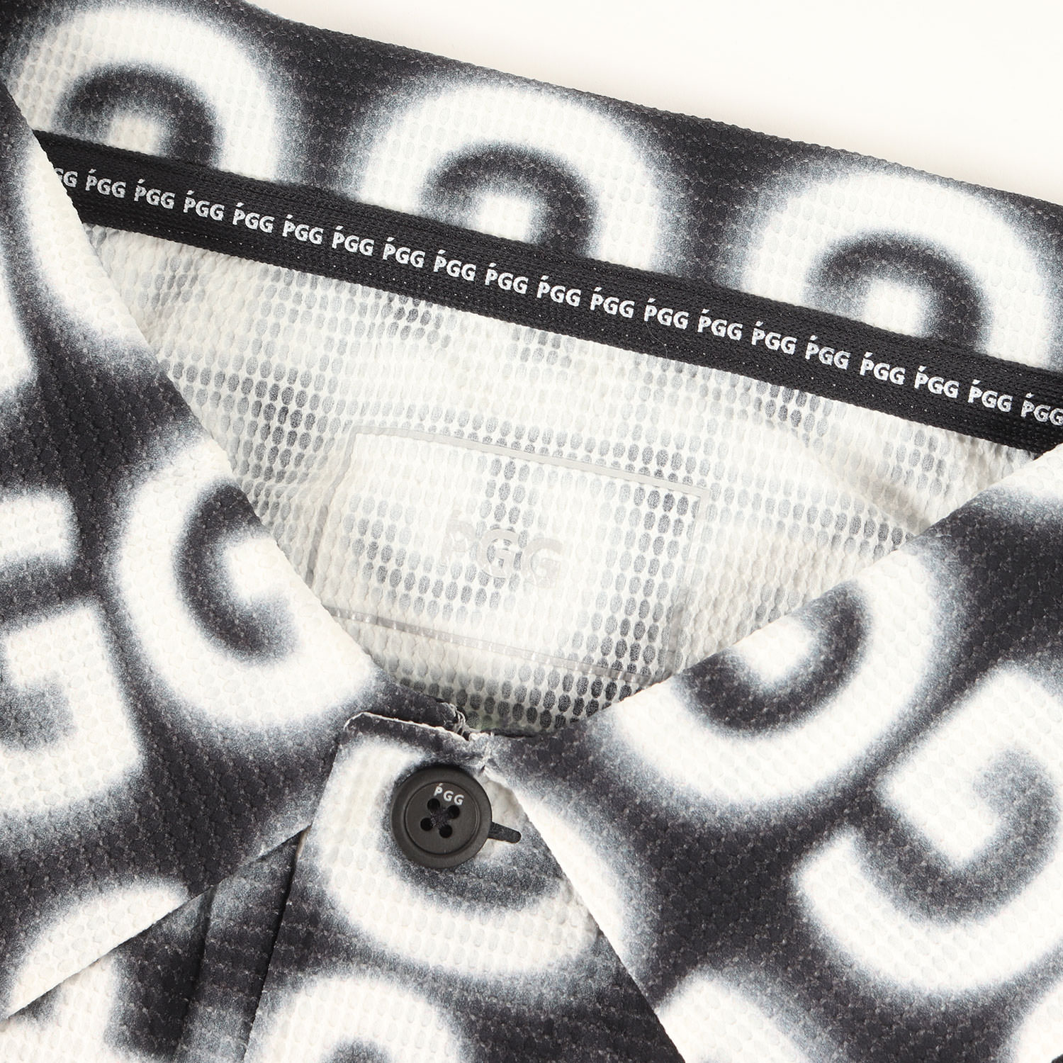| 商品説明 | 伸縮性の高いストレッチポリエステル素材を使用し、PGGブランドロゴリピートプリントが配されたポロシャツです。 |