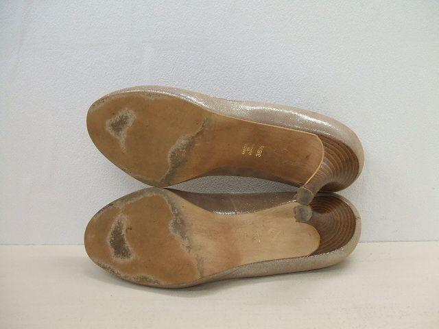 | 実寸サイズ | ソール最大幅:約8cm ヒール高:約7.5cm 全高:約13.5cm ※記載以外のサイズが合わないことを理由とした返品はできませんので、 記載部分以外で実寸サイズの気になる箇所があれば必ず購入前にご質問ください。 |