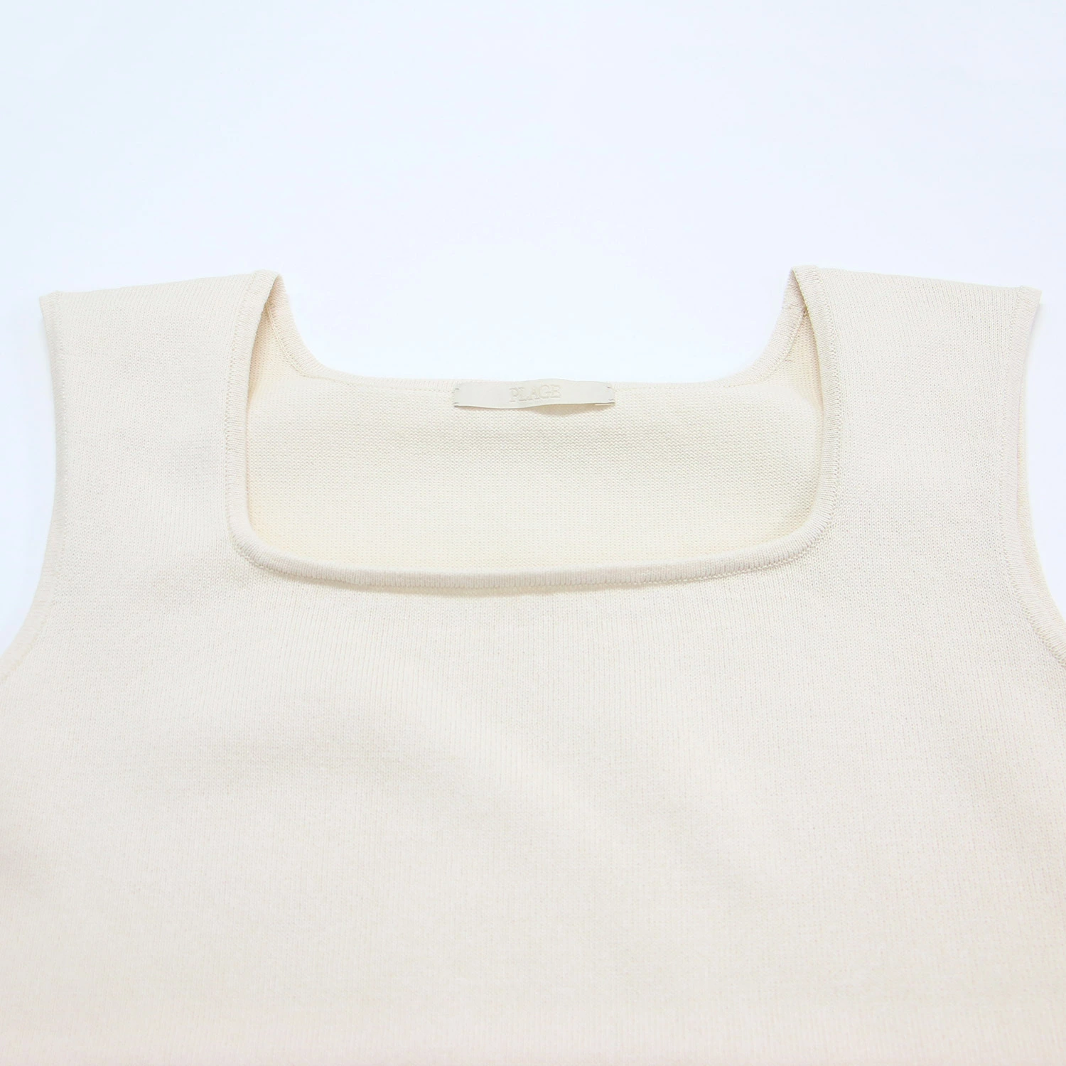Plage Ivory Knit, Size: Free | Spring/Summer 25 Paper Mix Sleeveless Knit | Paper Mix Sleeveless Pullover with Square Neck | Women's Sweater, Pre-owned, Excellent Condition, K4619