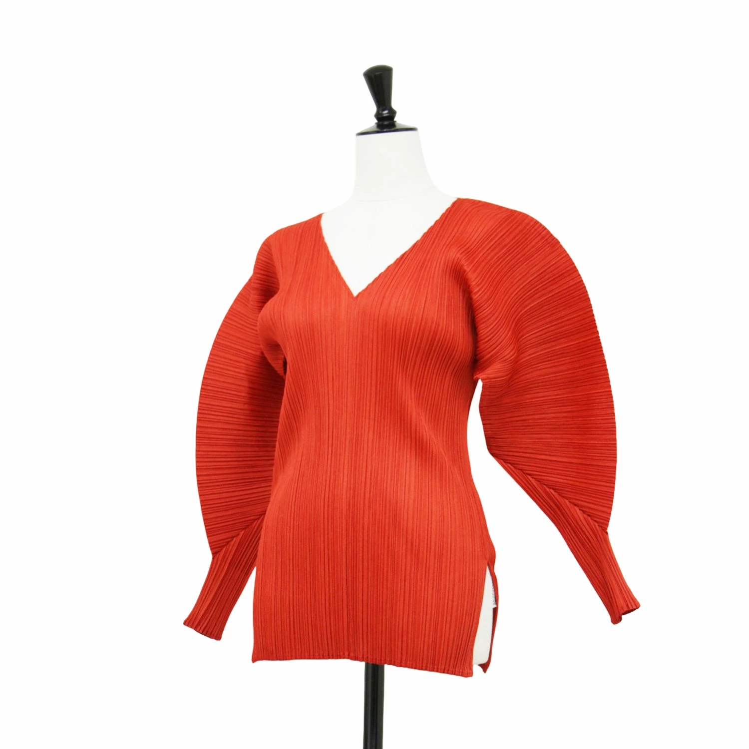 PLEATS PLEASE Blouse, Red, Size 4 (XL) | Pleated V-Neck Pullover Top/Blouse | Long Sleeves, Double-Faced Fabric | Cut and Sewn Top | Made in Japan [Women's] [Pre-owned] [K4643]