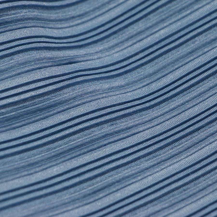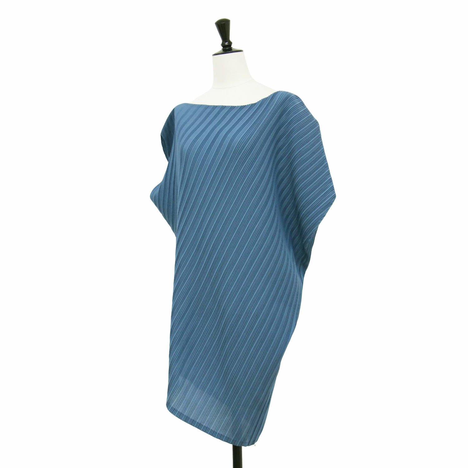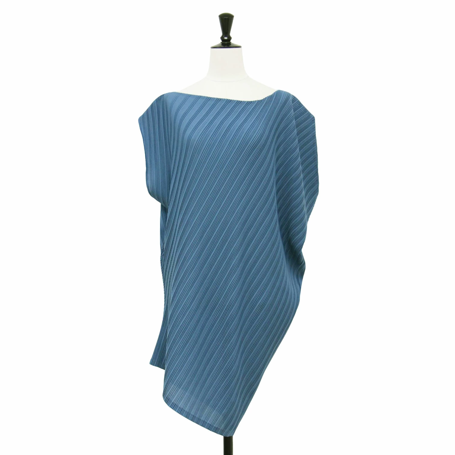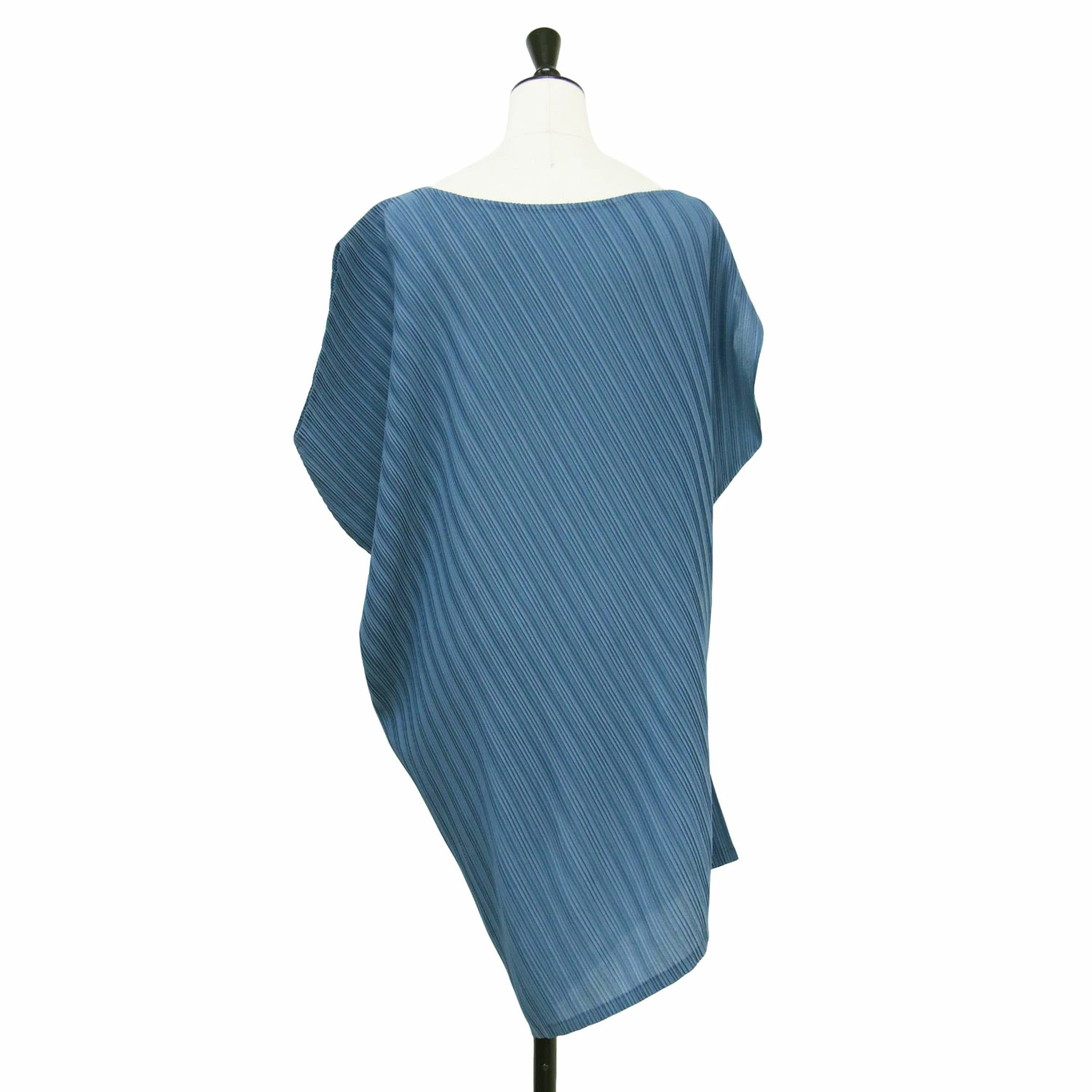 PLEATS PLEASE Pleated Blouse, Blue, Size 3 (L) | Asymmetrical Top / Tunic Blouse | Pullover Boat Neck French Sleeves | Made in Japan Cut and Sew Shirt [Women's] [Pre-owned] [K4646]