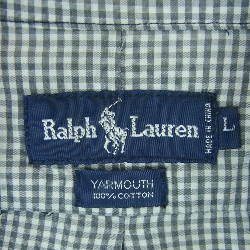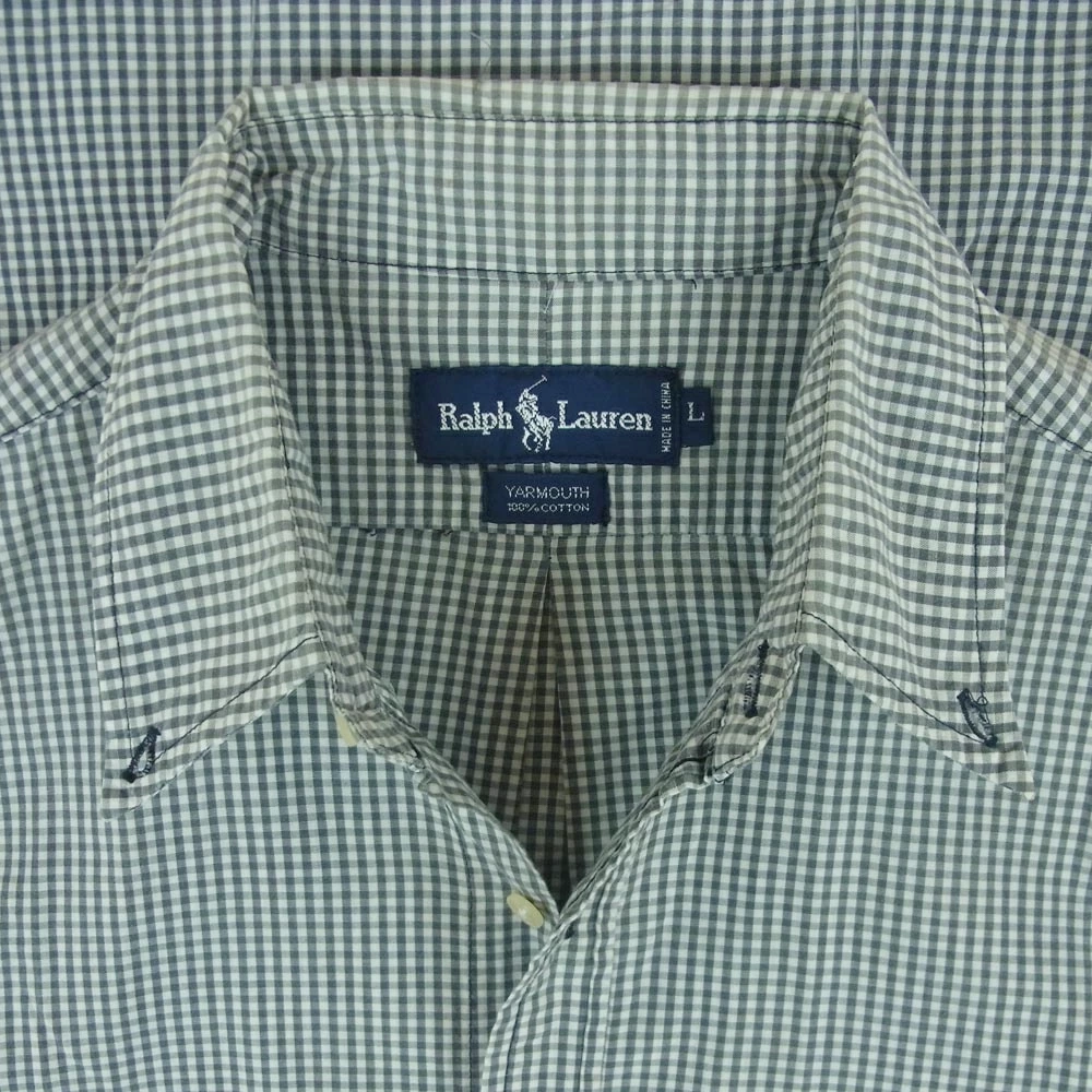 POLO RALPH LAUREN YARMOUTH Gingham Check Button-Down Short Sleeve Shirt, Gray/White, Size L, Men's [Used]