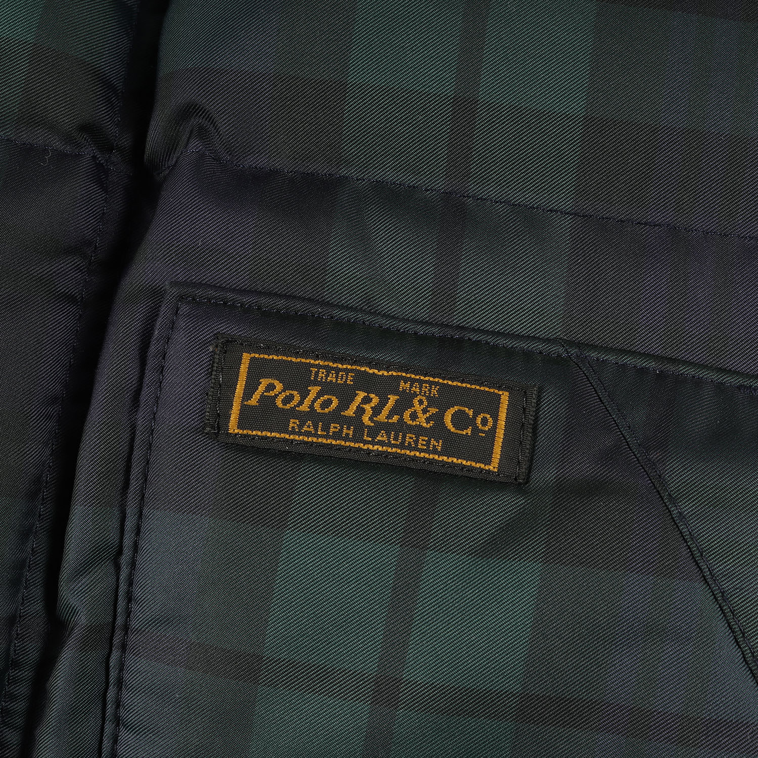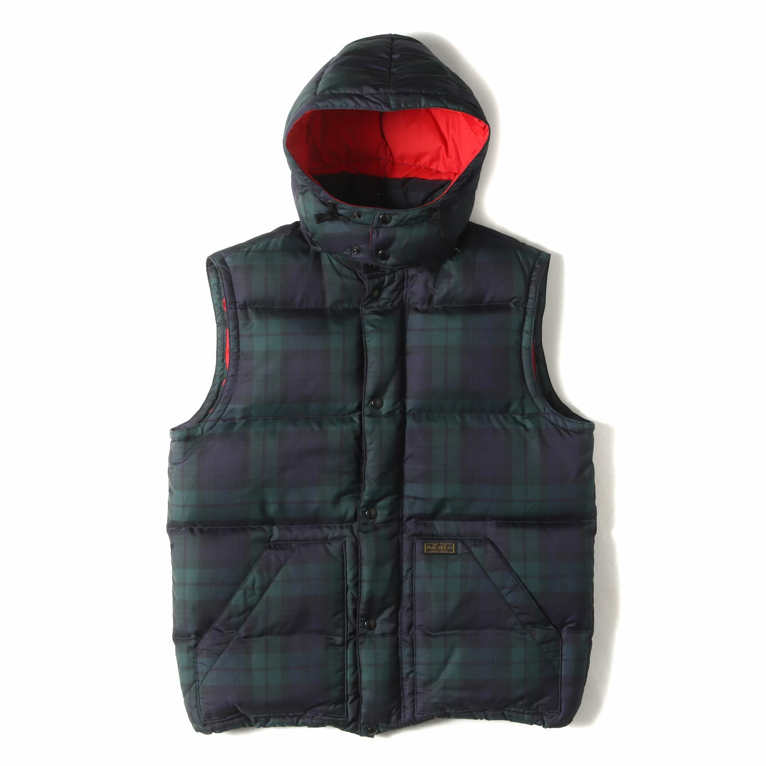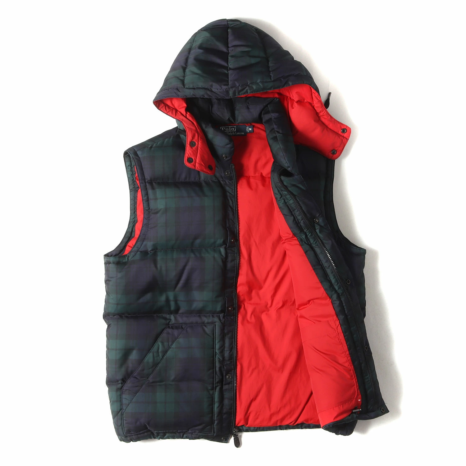 POLO Ralph Lauren Vest, Size M, Hooded Check Nylon Down Vest, Green, Outerwear, Jacket, Blouson, Men's, Pre-owned, K4614