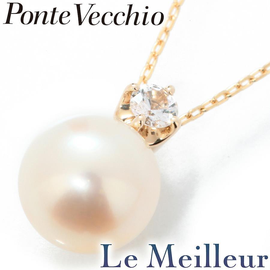 Ponte Vecchio Pearl Pendant Necklace, 1 Piece, 7mm Pearl, White Sapphire, K10, Pre-owned