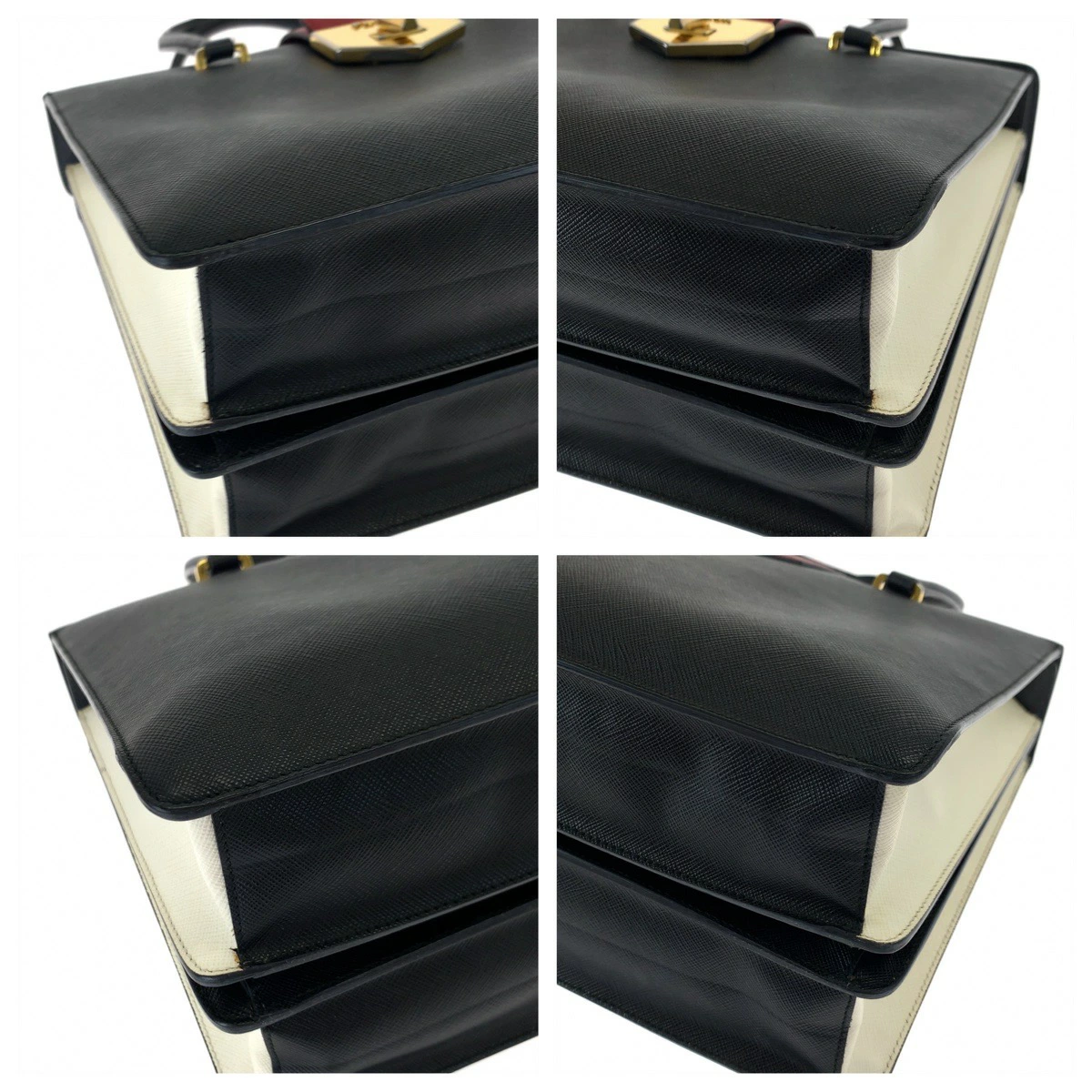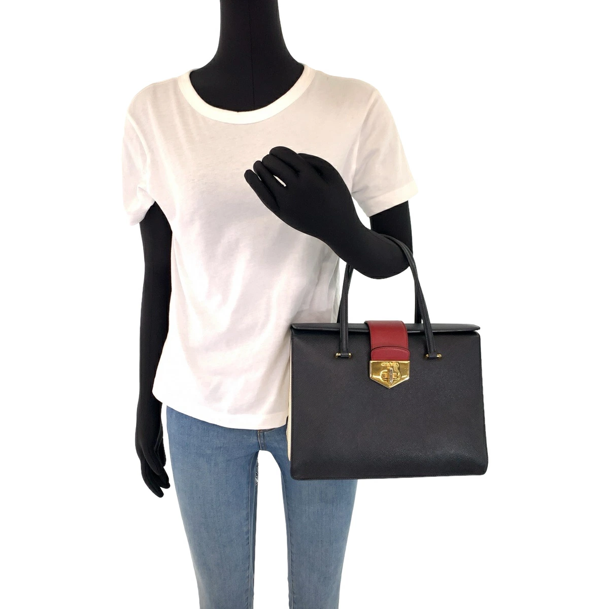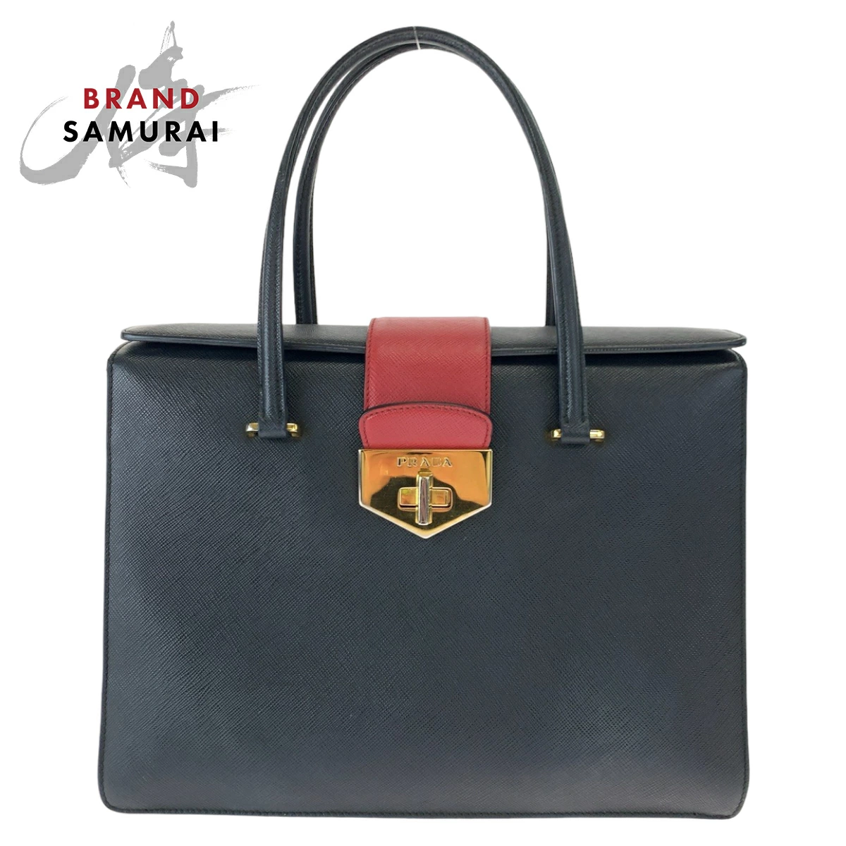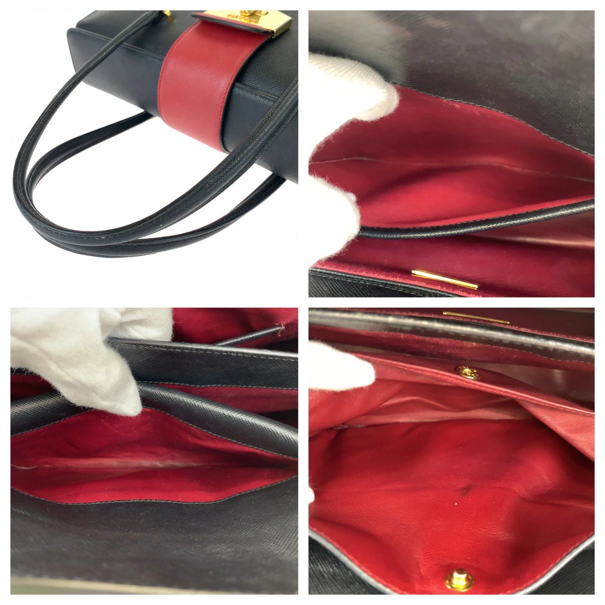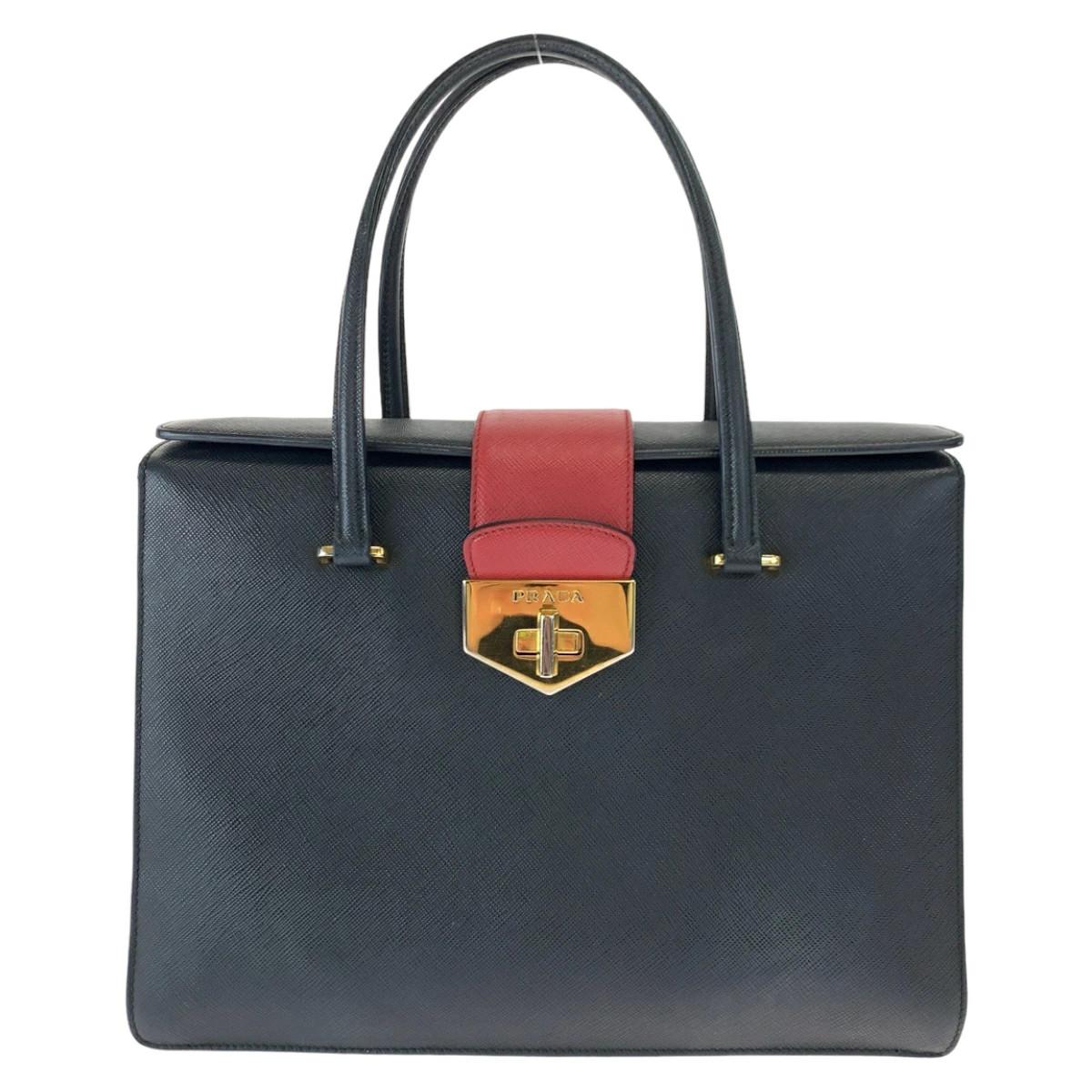 Pre-owned PRADA Saffiano Leather Handbag/Tote Bag B2725C, Black/Red with Gold Hardware, Women's, 503339