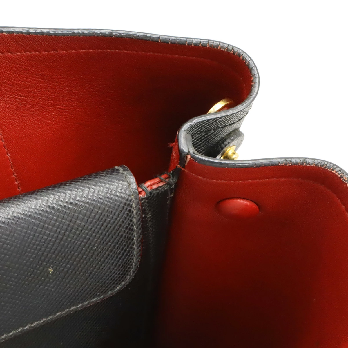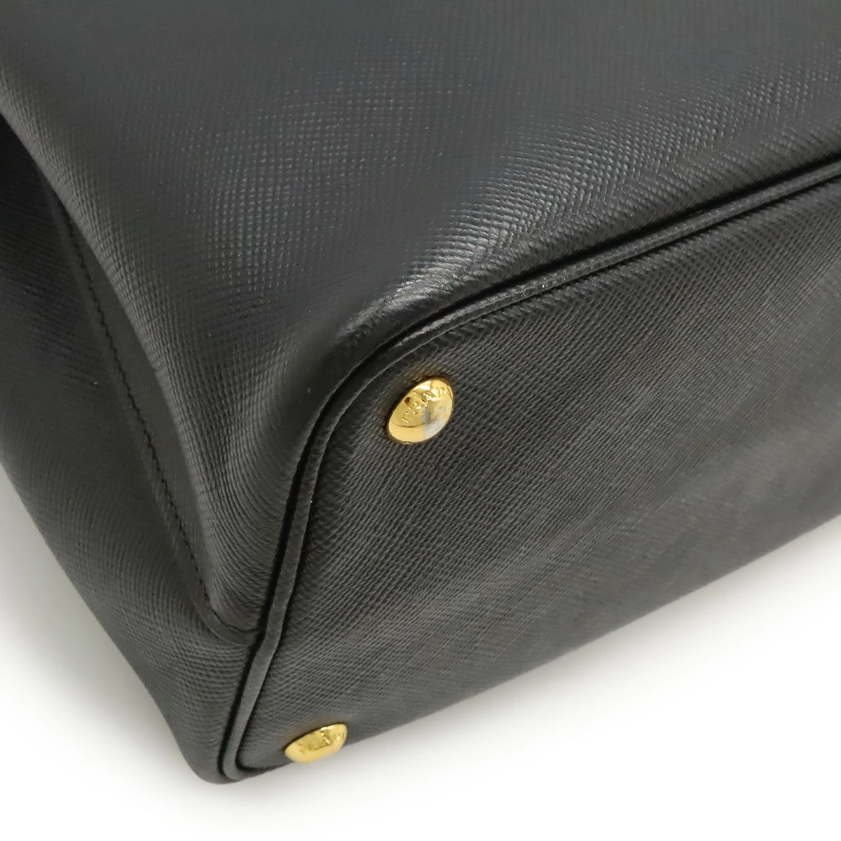 サフィアーノレザーにロゴ金具のアクセントが効いたプラダらしい高級感のある2WAYハンドバッグ。