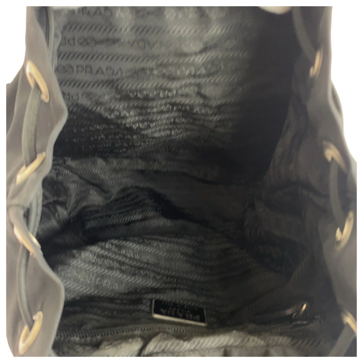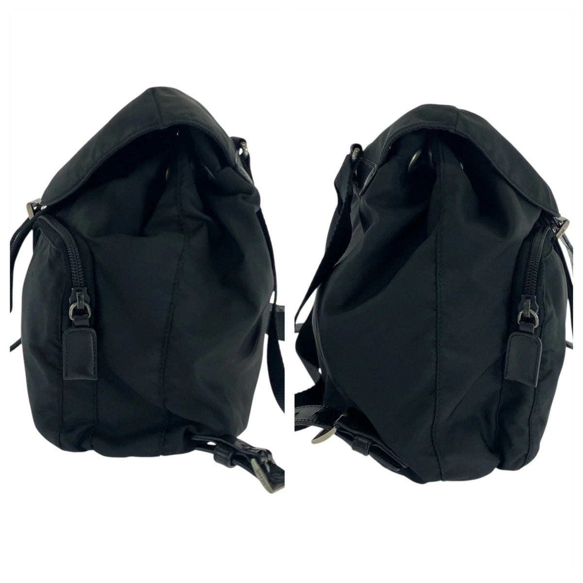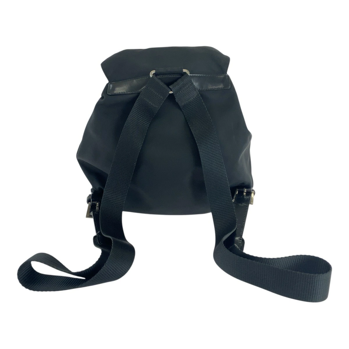 Pre-owned Prada Tessuto triangular logo plate in black with silver hardware. Nylon backpack, women's, item number 504578.