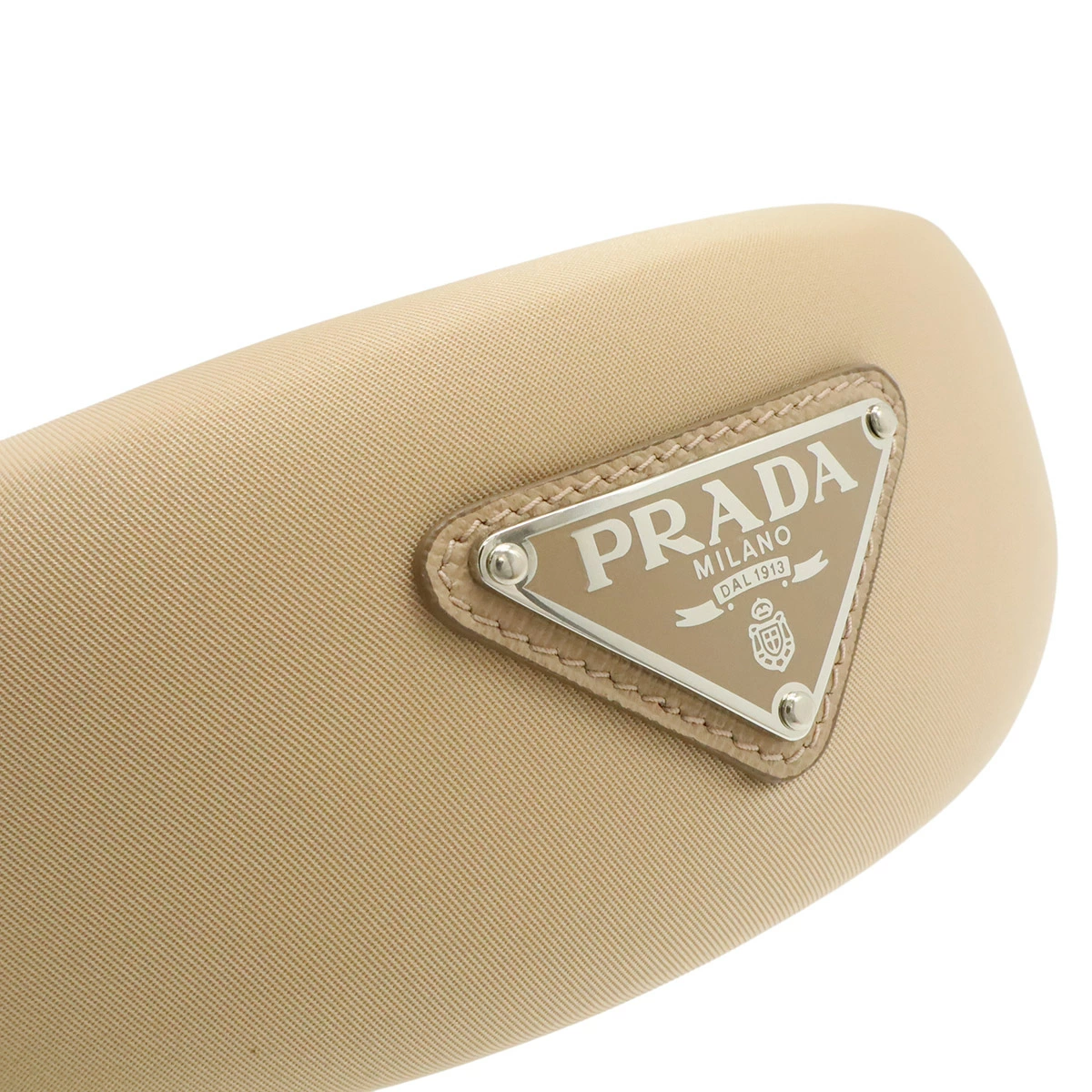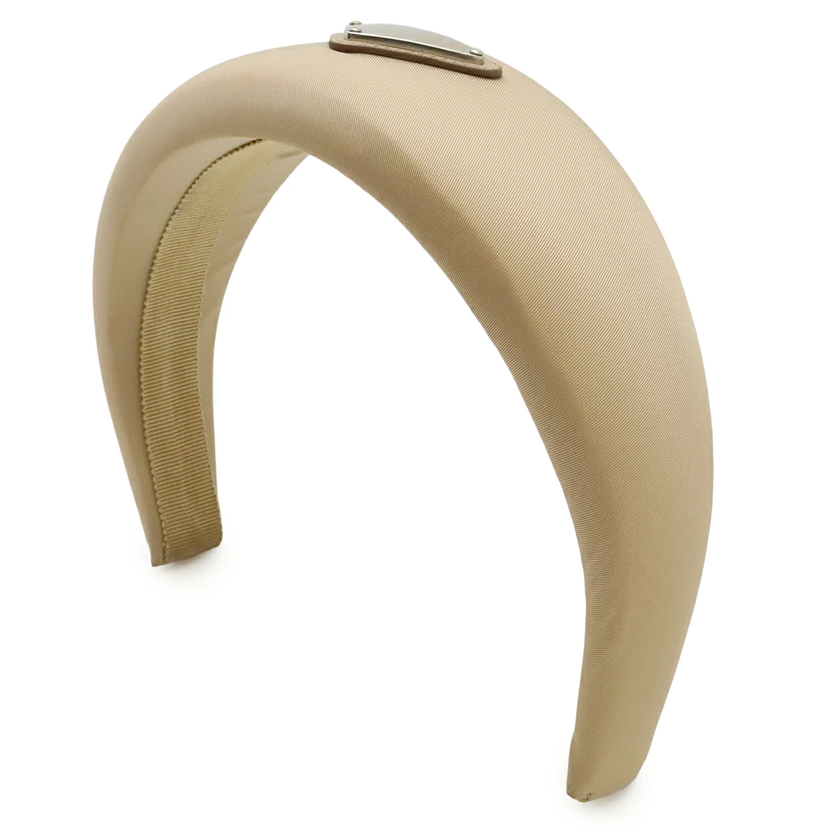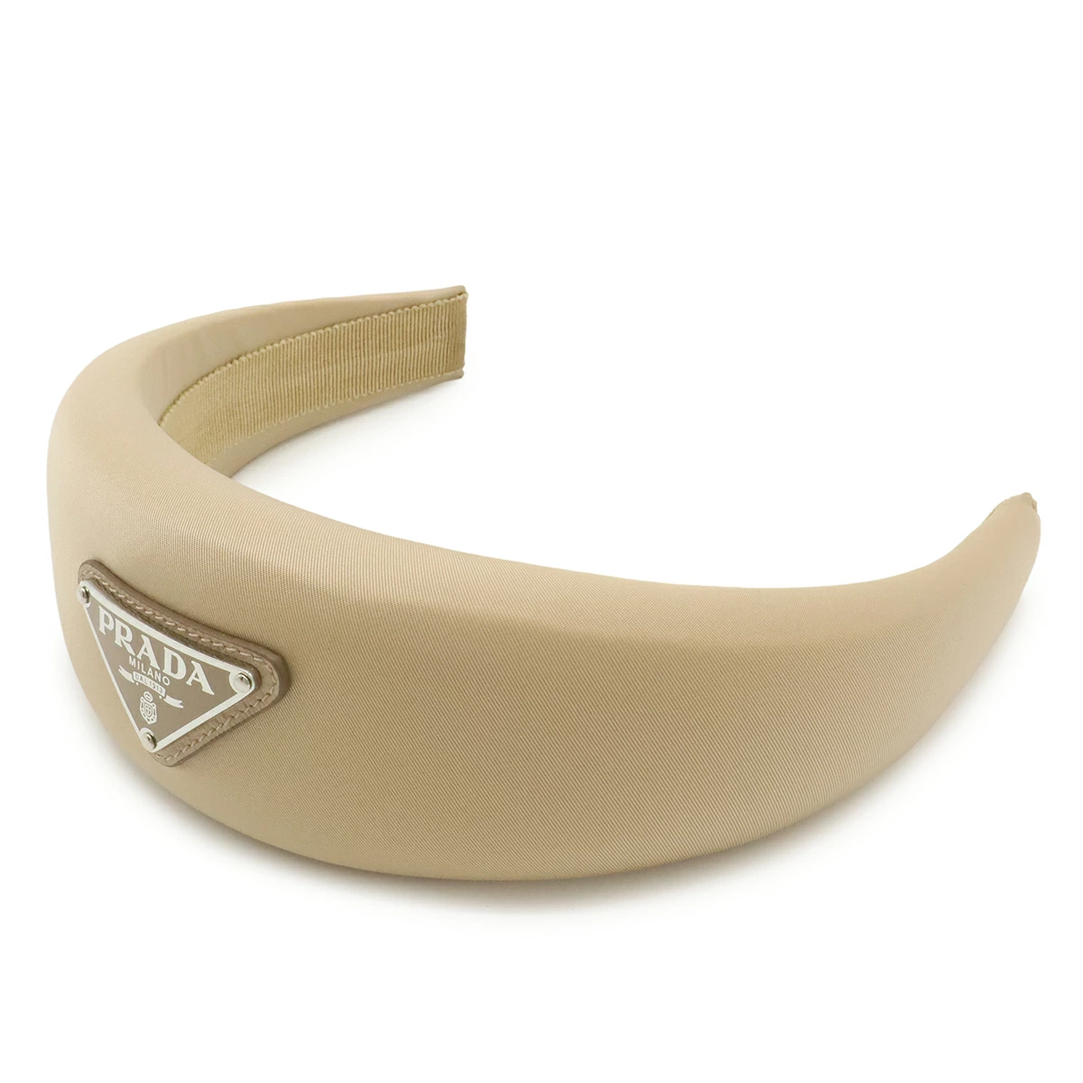Pre-owned Prada Triangle Logo Headband, Beige Nylon with Silver Hardware, 1IH016