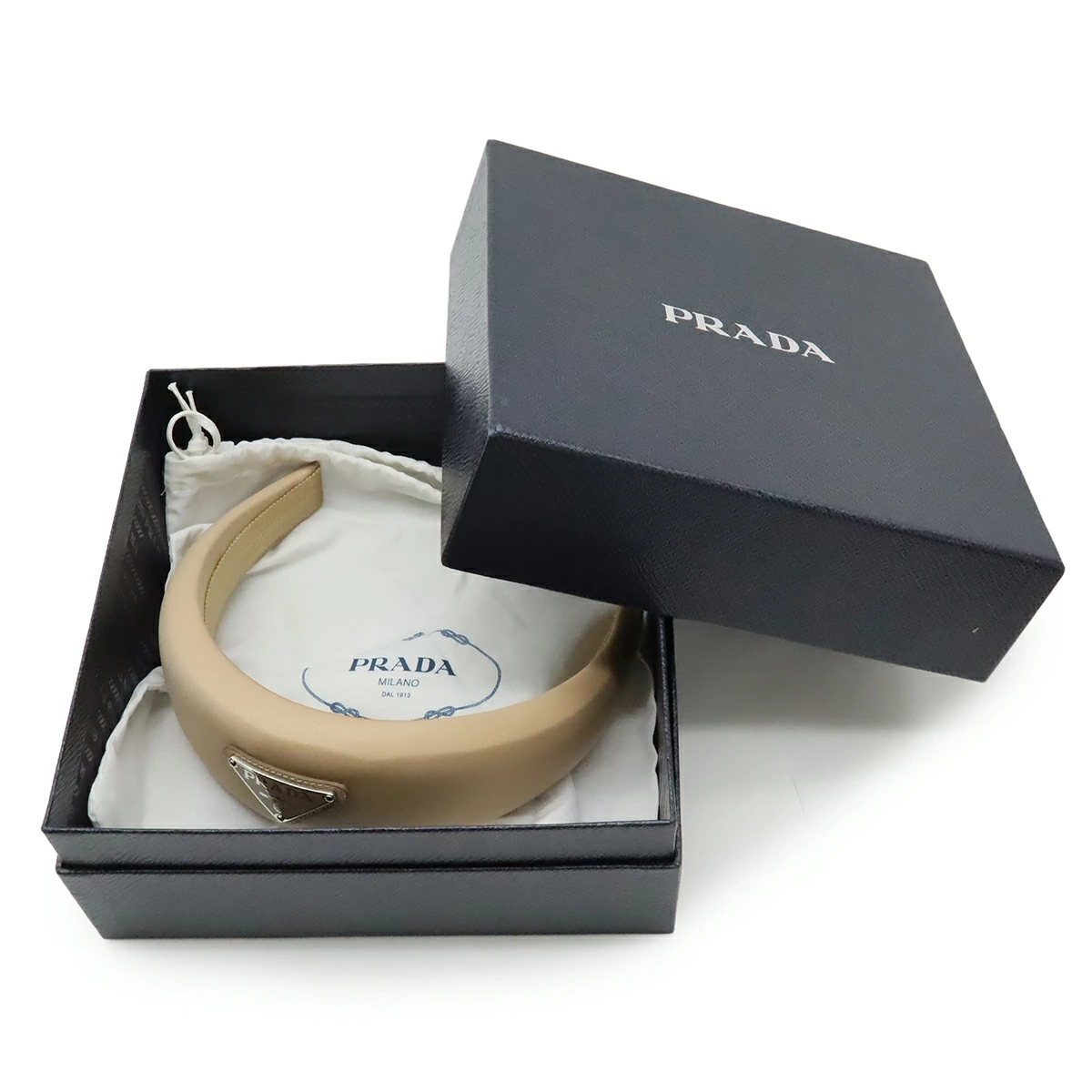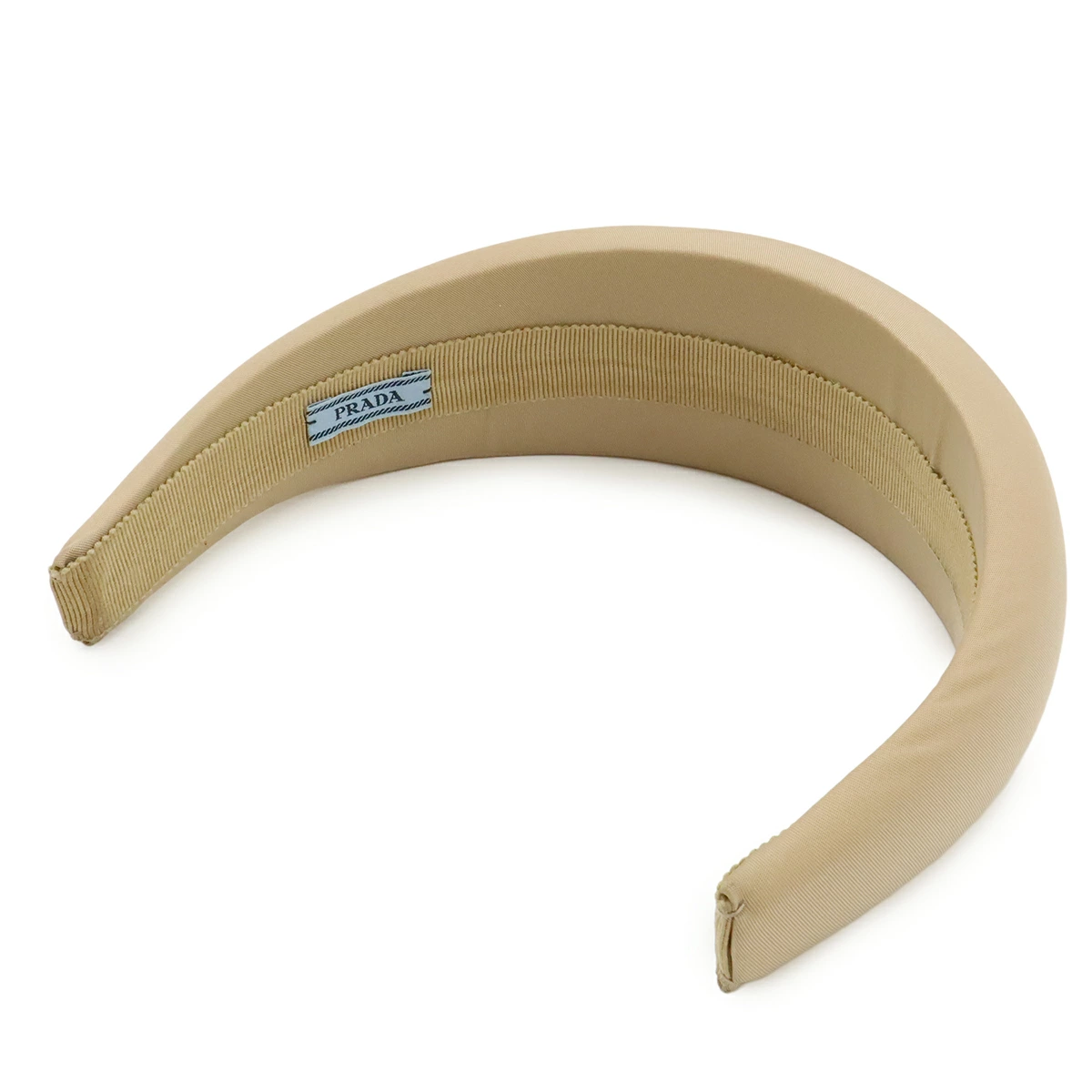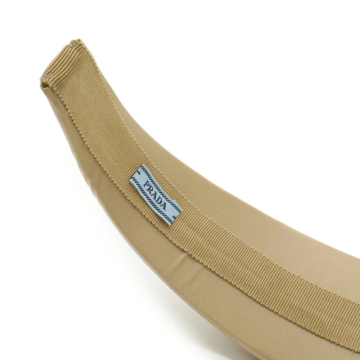 Pre-owned Prada Triangle Logo Headband, Beige Nylon with Silver Hardware, 1IH016