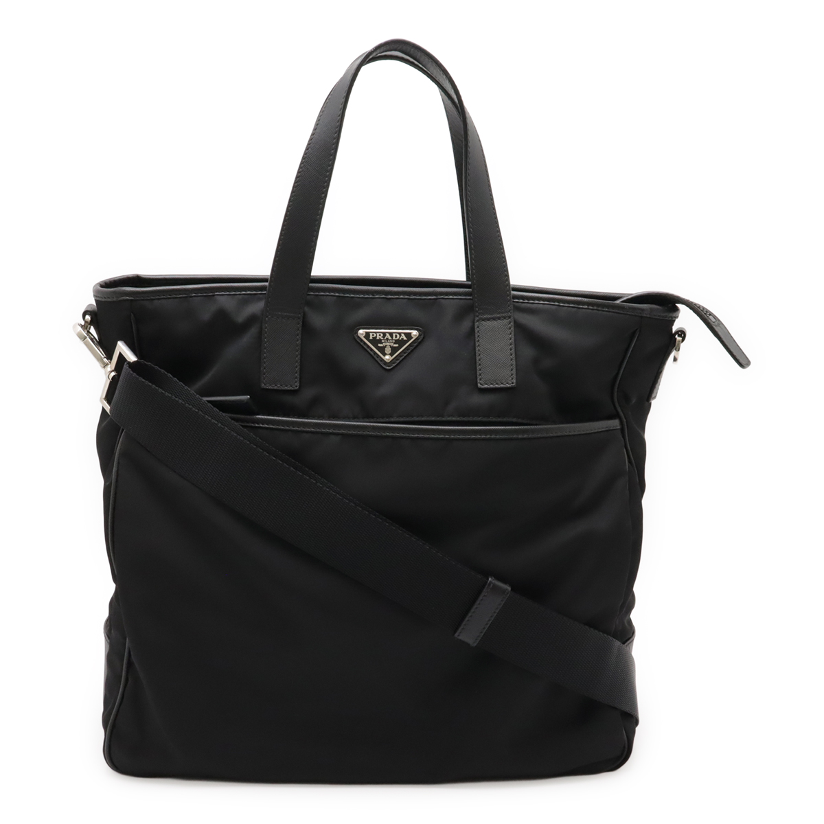 軽量のナイロン素材にロゴ金具のアクセントが効いたプラダらしい高級感のあるバッグ。