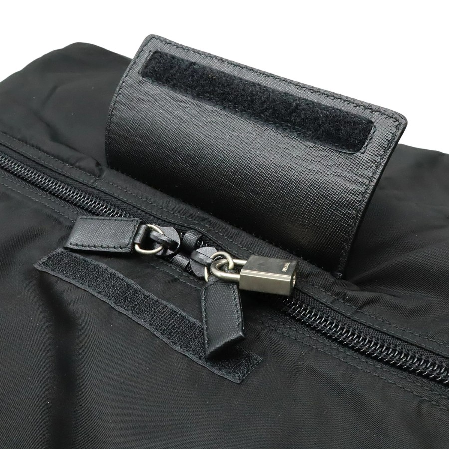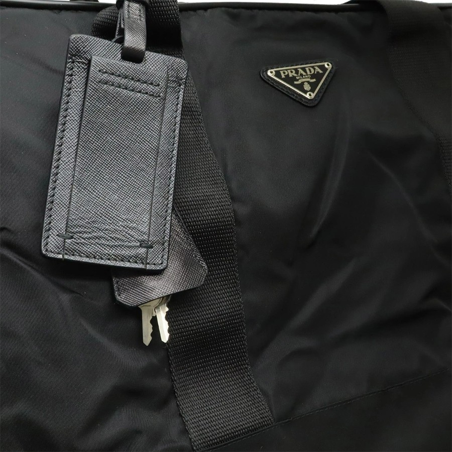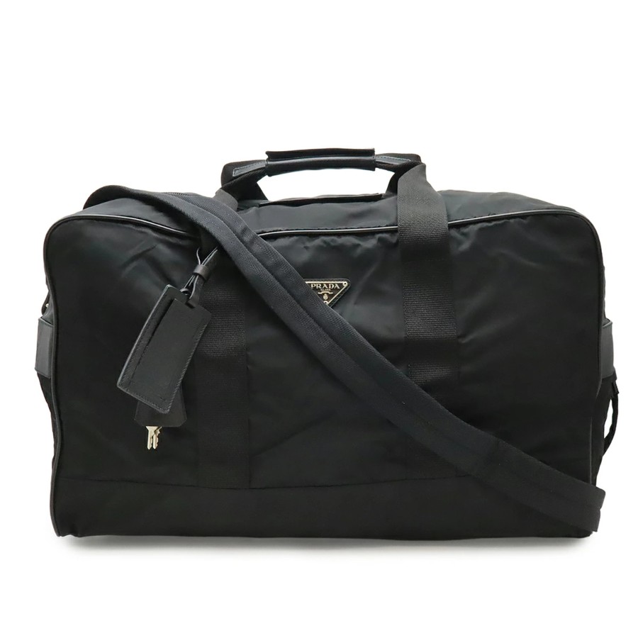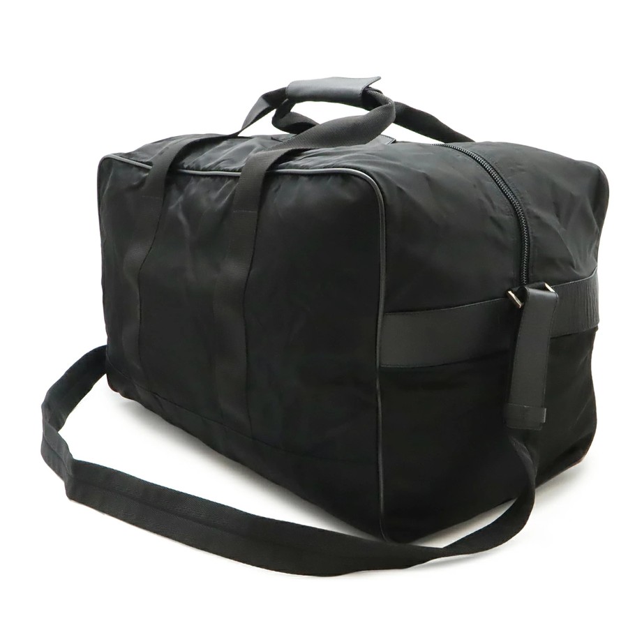 PRADA Triangle Logo Boston Bag, Travel Bag, 2-Way Shoulder Bag, Nylon and Leather, NERO Black, V70 [Used]