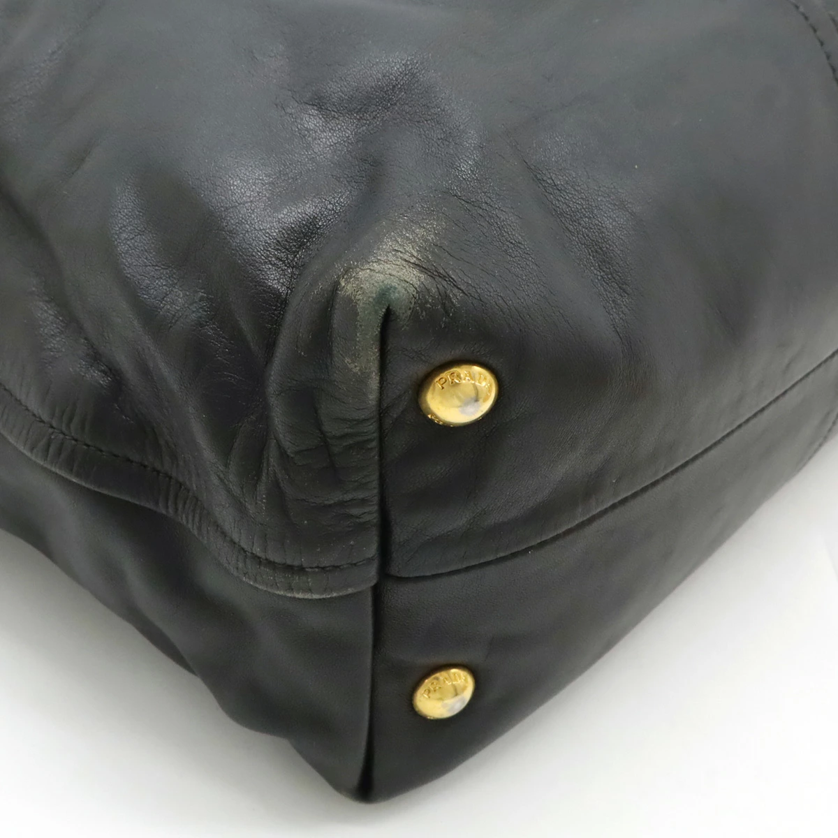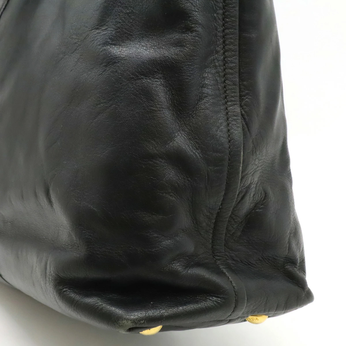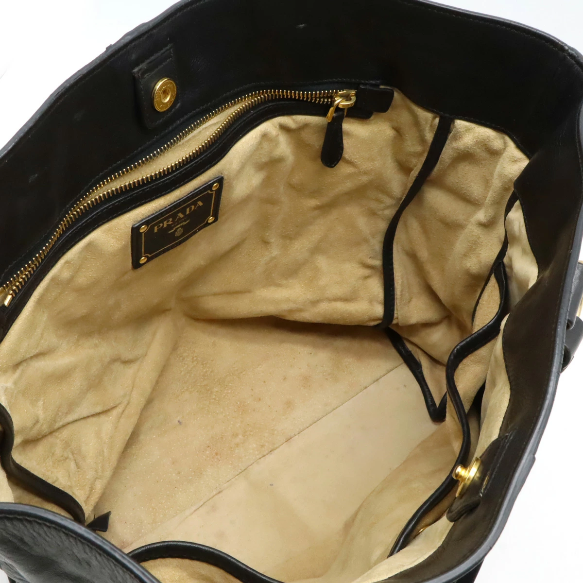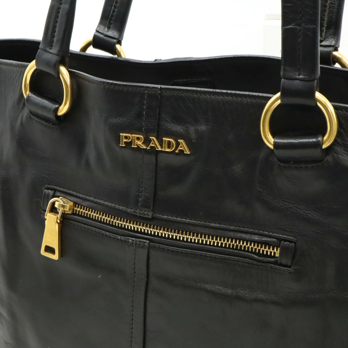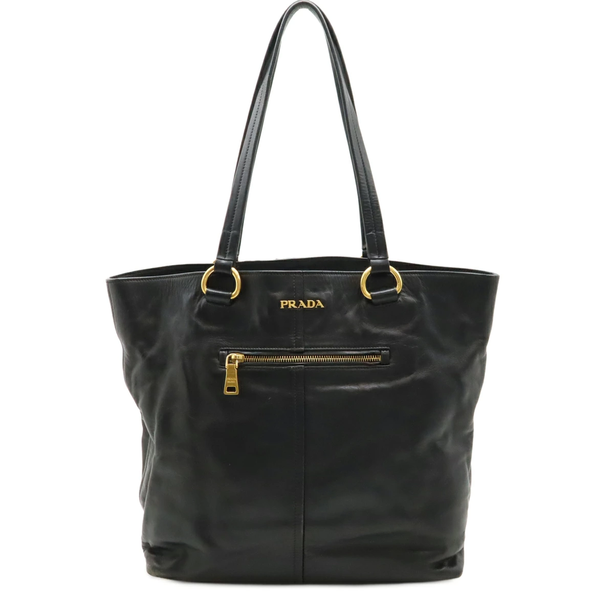 プラダらしい上質なレザーを使用し上品で高級感溢れるトートバッグ。
