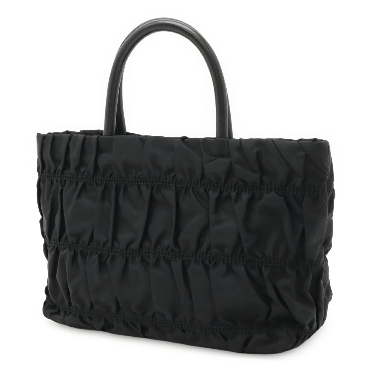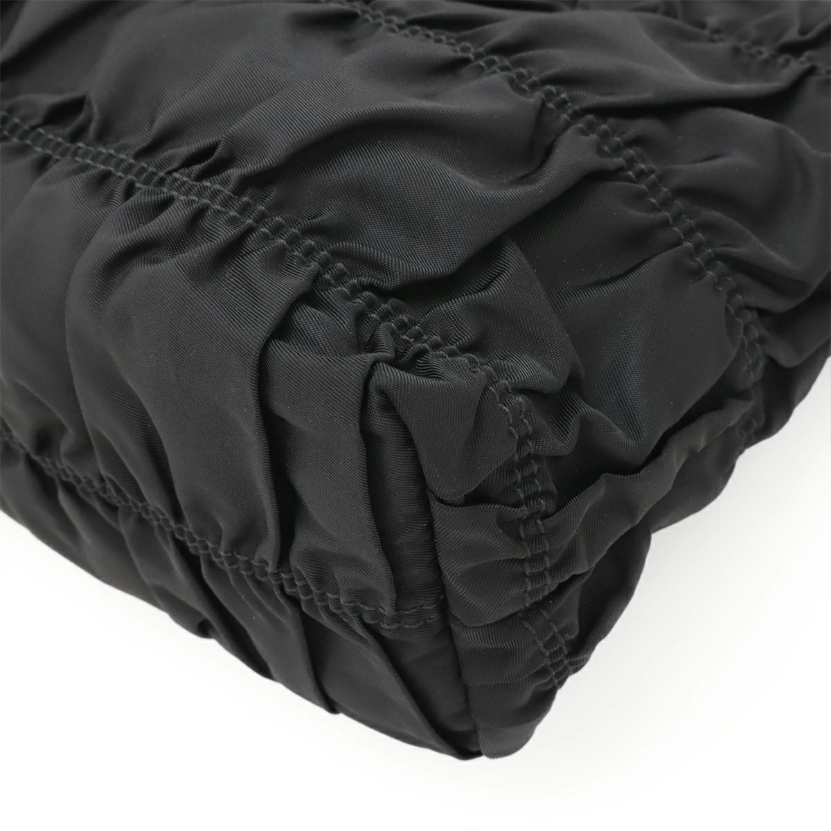 なめらかで上質なナイロン地にギャザーデザインがエレガントなトートバッグ。