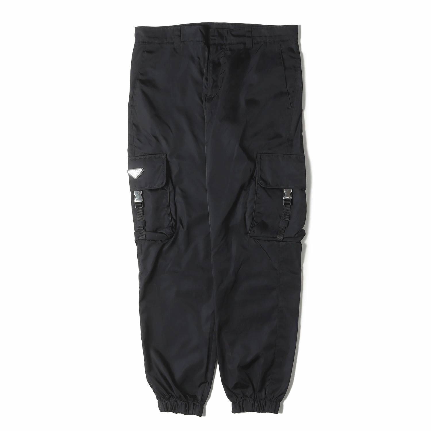 - ナイロン生地を使用した裾リブタイプのカーゴパンツです。サイドポケットのトライアングルロゴパッチ、アジャスターベルトがポイントです。