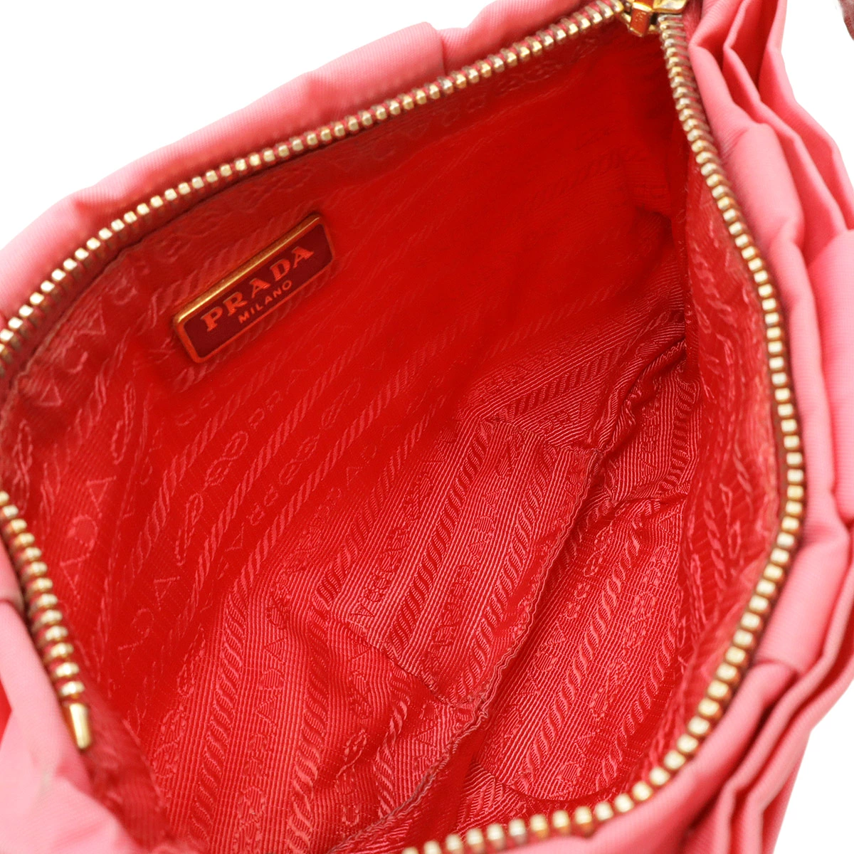 プラダらしいリボンのデザインがオシャレなリストレットポーチです。