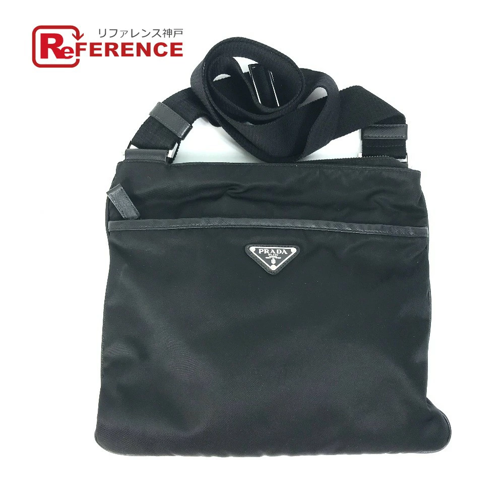 Pre-owned PRADA 2VH053 Triangle Logo Shoulder Bag in Nylon/Leather, Black.