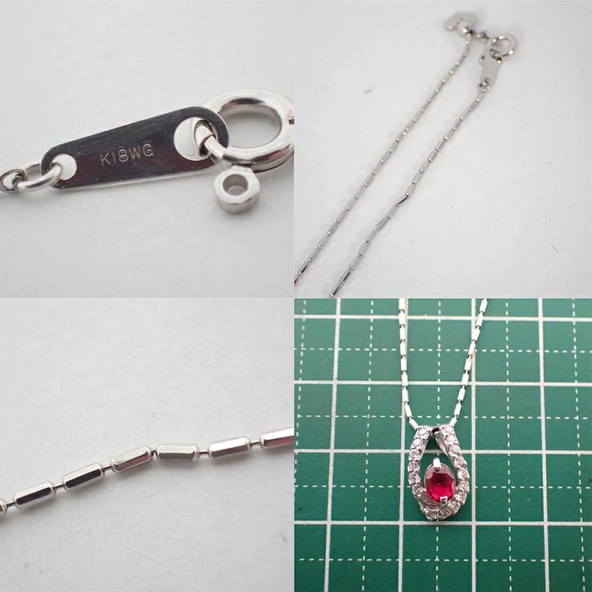 Product DetailsProduct Rank: AMaterial: 18K White GoldRuby: 0.62ctDiamond: 0.21ctWeight: Approx. 3.0gTotal Length: Approx. 46cm (with adjustable strap)Product DetailsThis pendant necklace features a beautiful deep red ruby surrounded by sparkling diamonds.Brand new and polished.Product Rank: [N] New or equivalent, in excellent condition with no defects. [S] Almost flawless and in good condition. [A] Lightly used. [B] Signs of use. [C] Very heavy wear, obvious damage or stains, in need of repair. ____________________________Condition: Used
