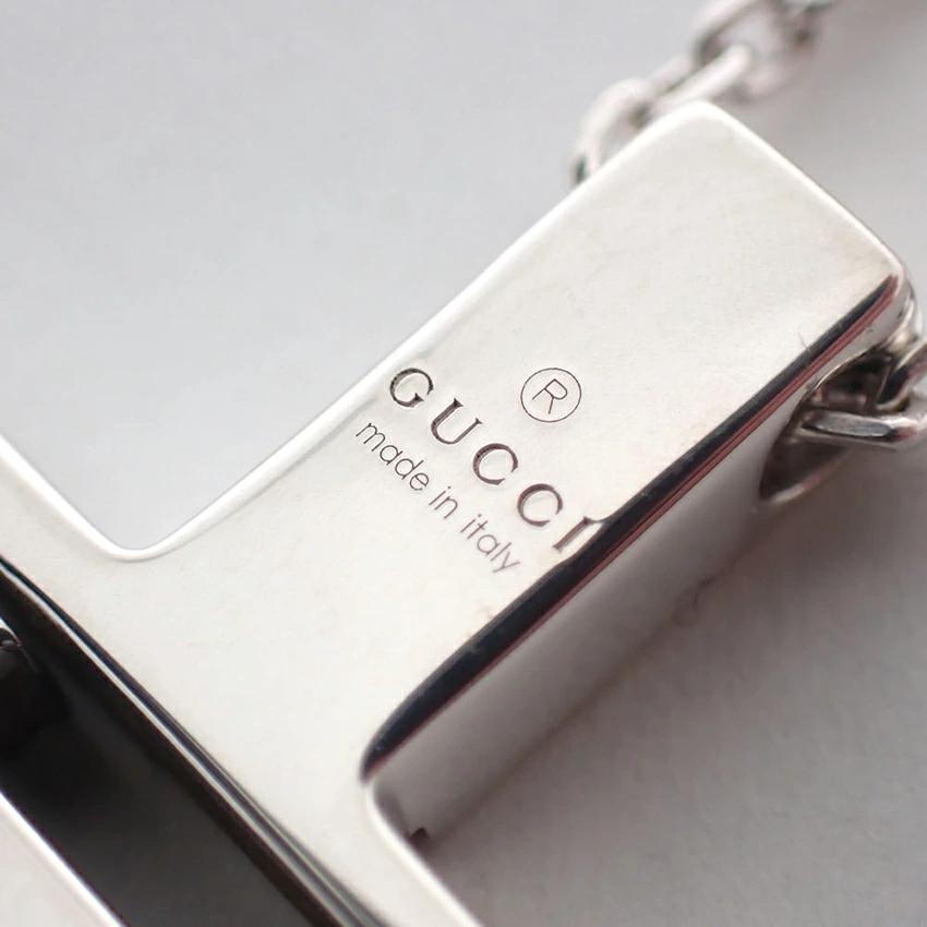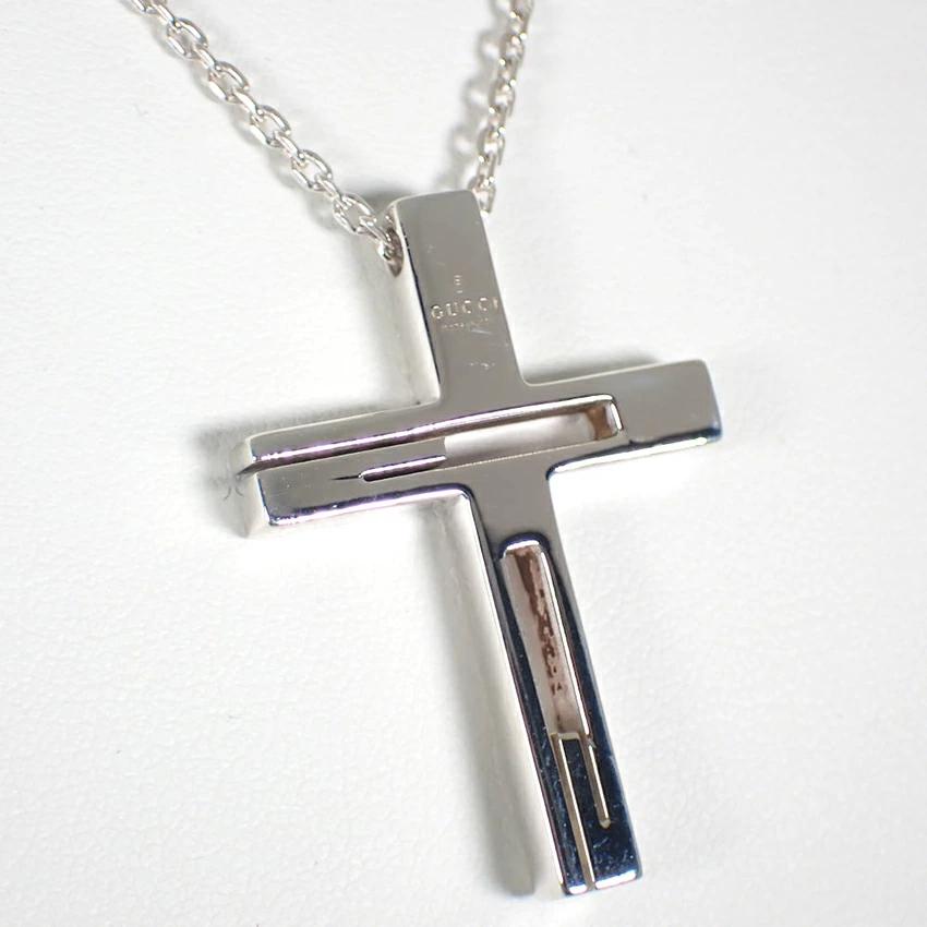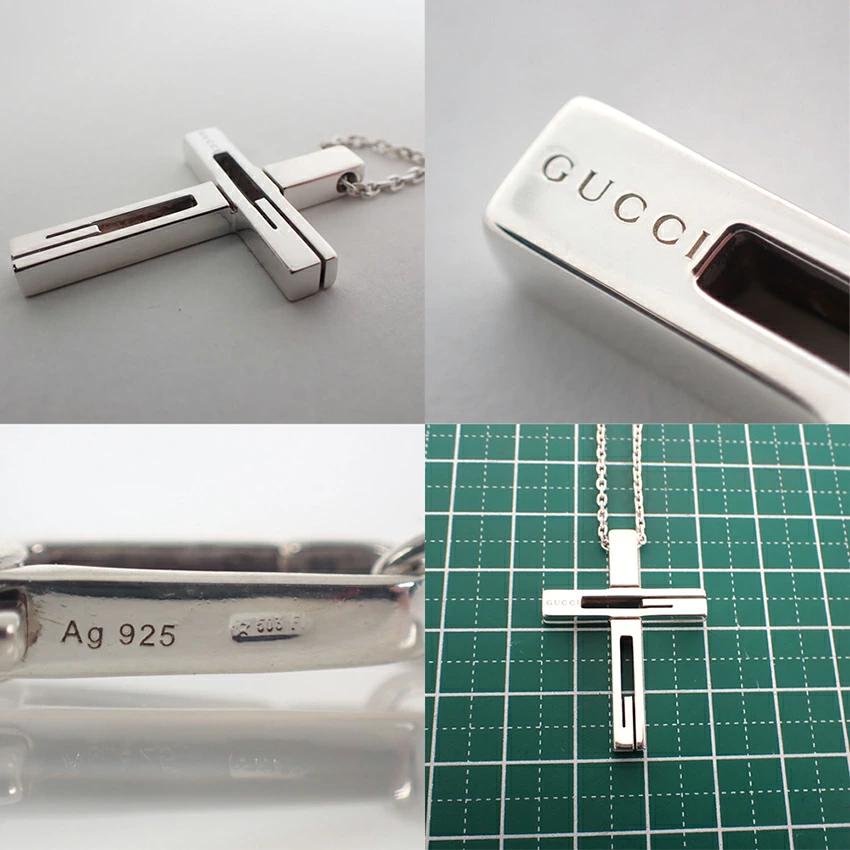 Product DetailsProduct Rank: AMaterial: 925 Sterling SilverLength: Approx. 58.0cm (-5.5cm adjuster)Weight: Approx. 13.1gTop: Approx. 22.1mm x 19.3mmProduct DetailsGUCCI Cross PendantBrilliantly polished.Product Rank: [N] New or equivalent, in excellent condition with no defects. [S] Almost flawless and in excellent condition. [A] Lightly used. [B] Signs of use. [C] Very heavy wear, obvious damage, or in need of repair. ____________________________