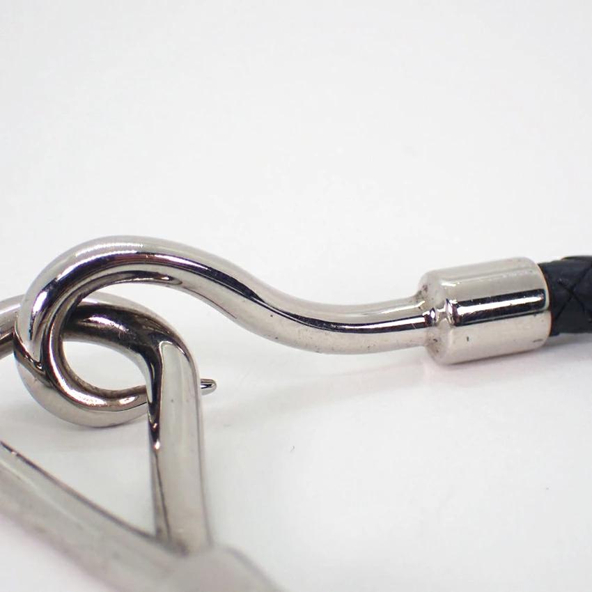 This hook bracelet features braided leather for an elegant look. The leather is in almost perfect condition. There are some minor scratches on the hardware, but the item is in relatively good condition. Please view the photos for further information.