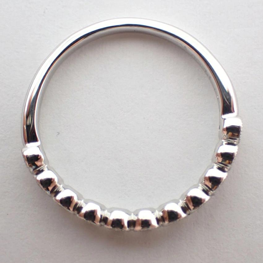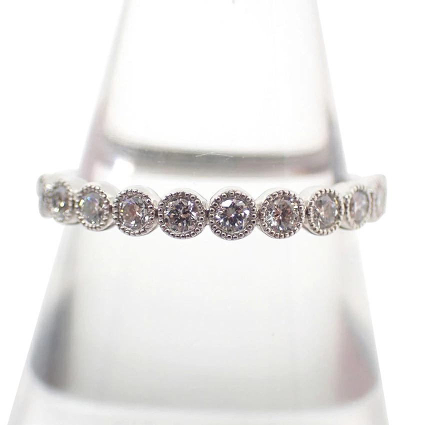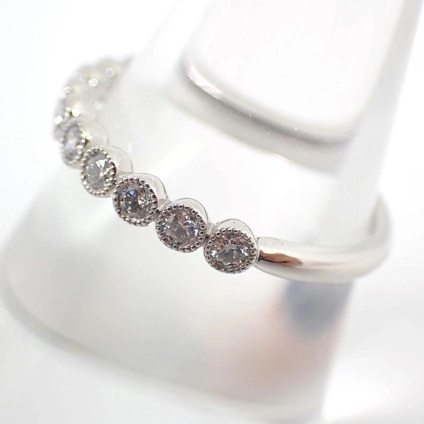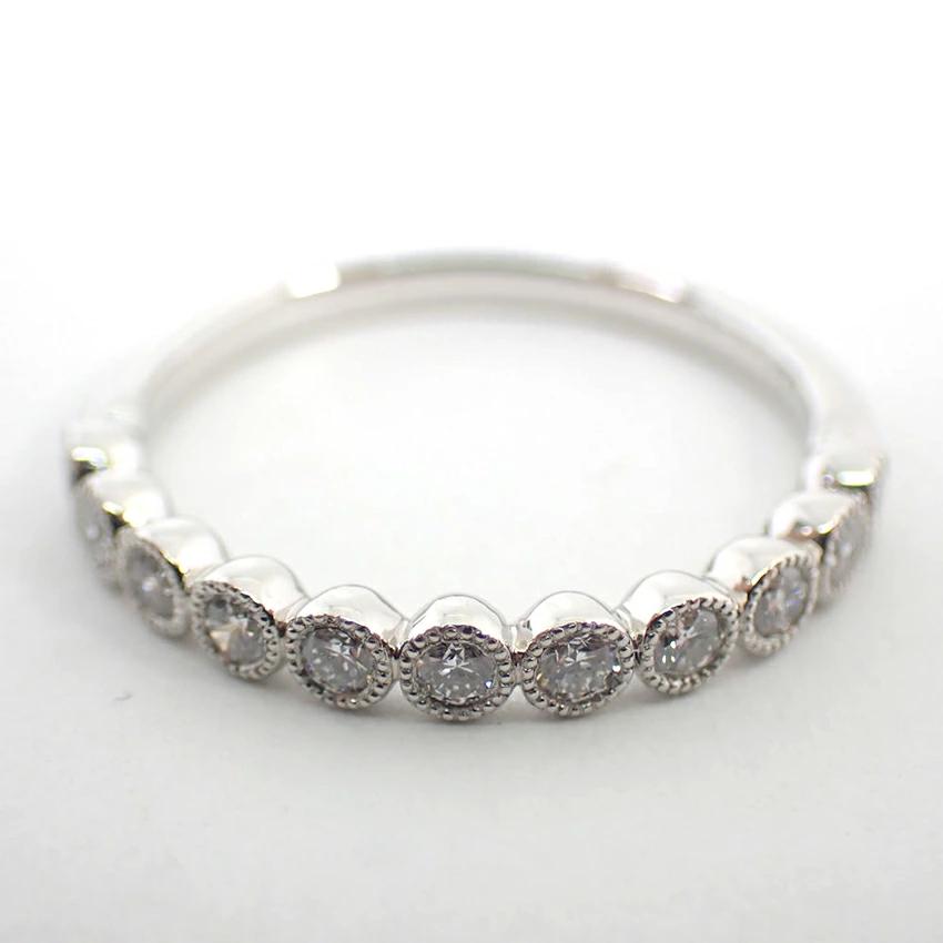This ring is set with a colorless, sparkling, high-quality diamond. It features an elegant milgrain setting throughout.