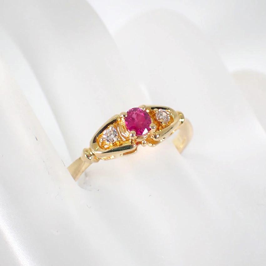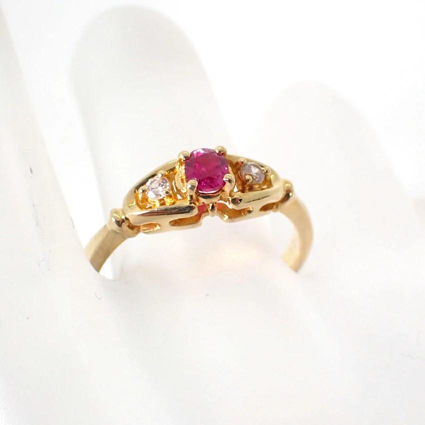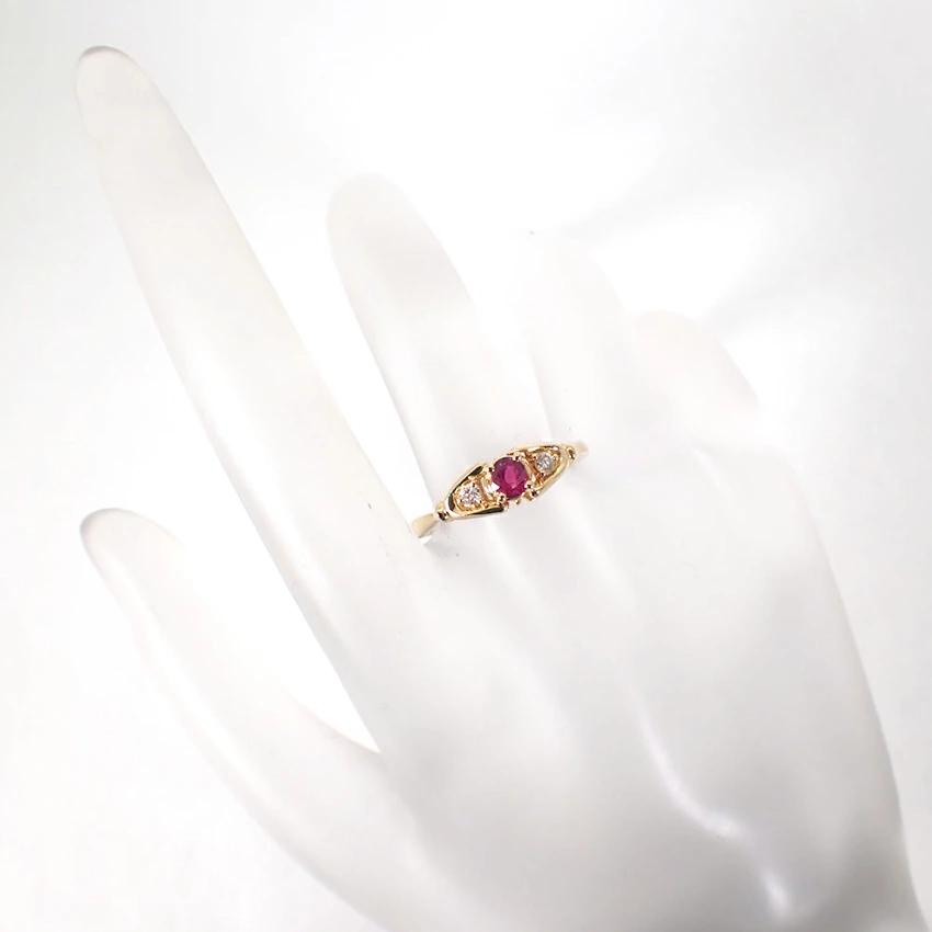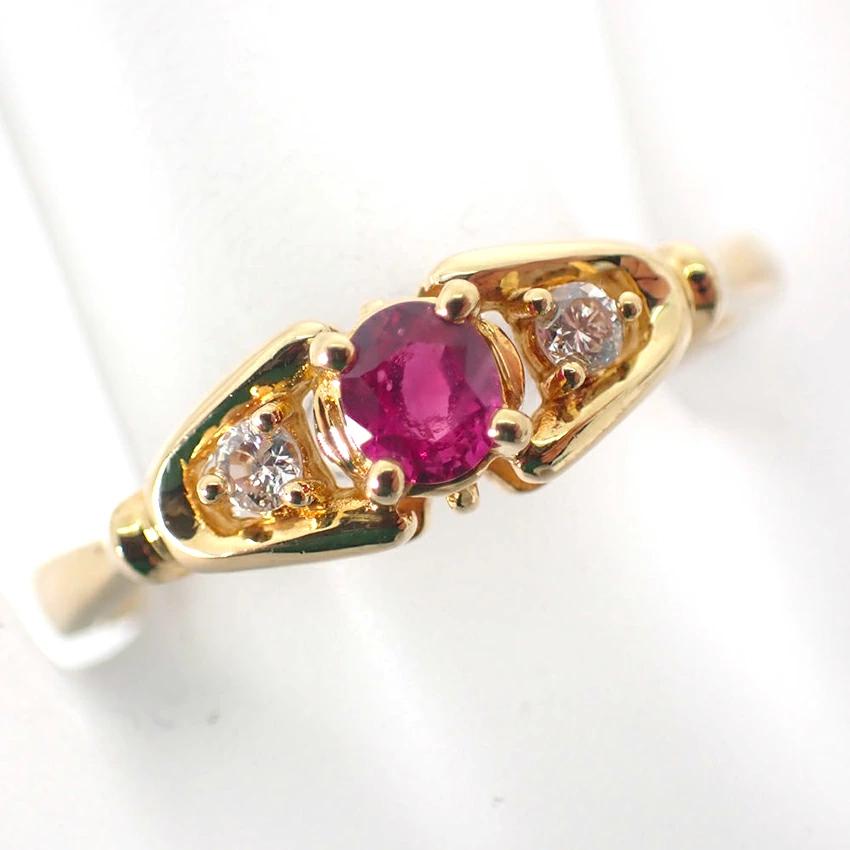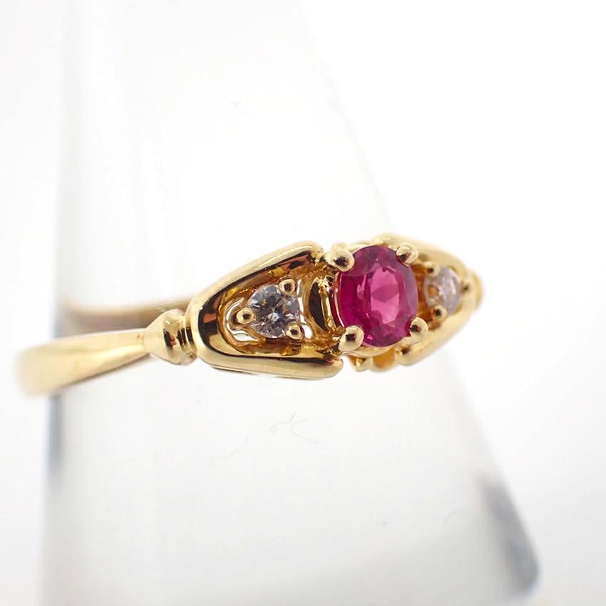 Product DetailsProduct Rank: AMaterial: 18K Yellow GoldRuby: 0.27ctDiamond Melee: 0.06ctWeight: Approximately 2.8gJapan Size: 14 / International Size: 54 / US Size: 7-7.5Width: Approximately 5.3mmProduct DetailsThis elegant piece features a beautiful, vibrant ruby.Brand new and polished.Product Rank: [N] New or equivalent, in excellent condition with no defects. [S] Almost flawless and in good condition. [A] Lightly used. [B] Signs of use. [C] Very heavy wear, obvious damage, or in need of repair. ____________________________Condition: Used