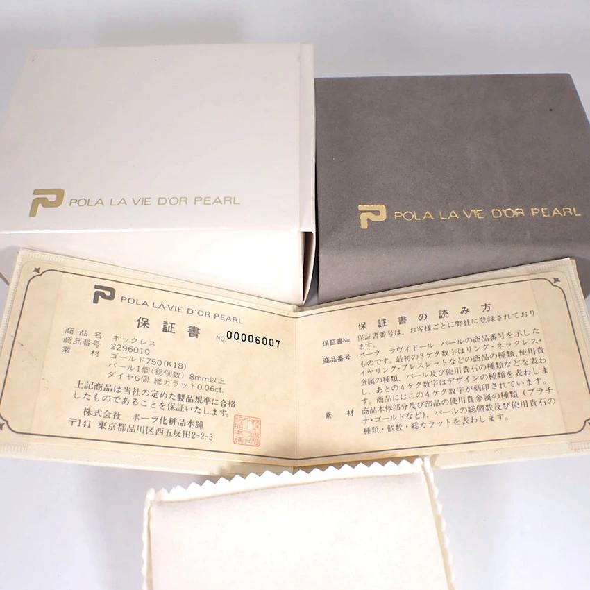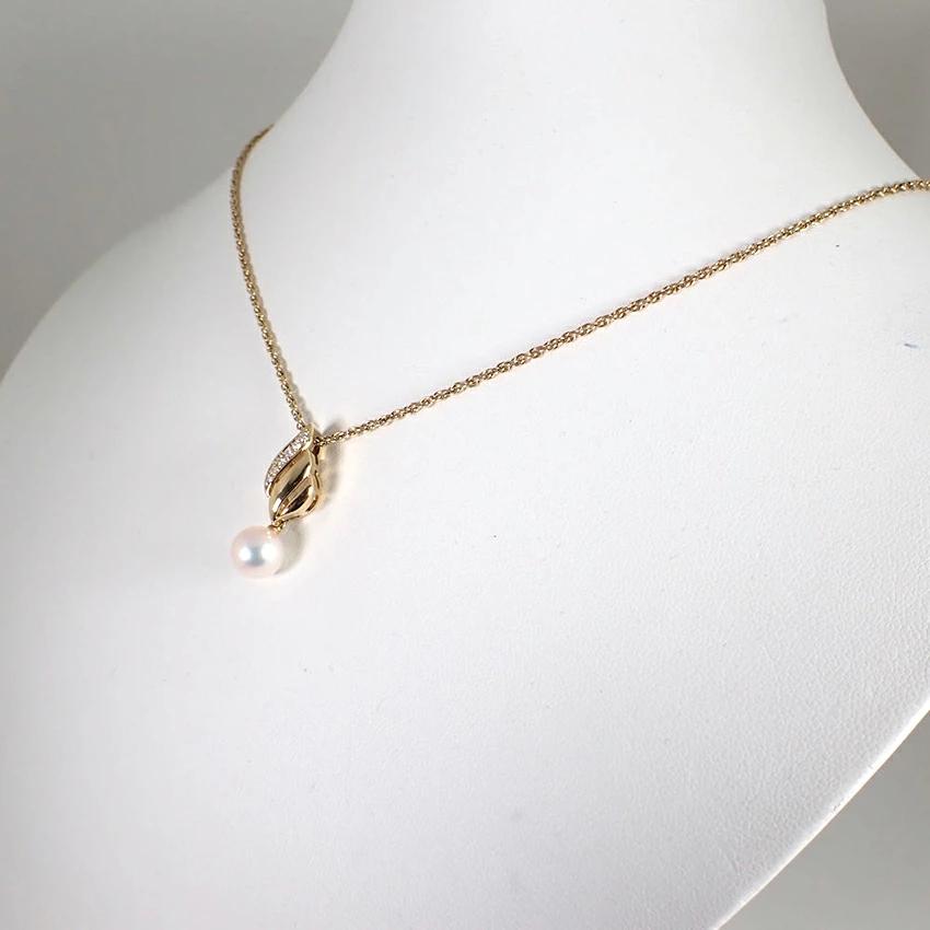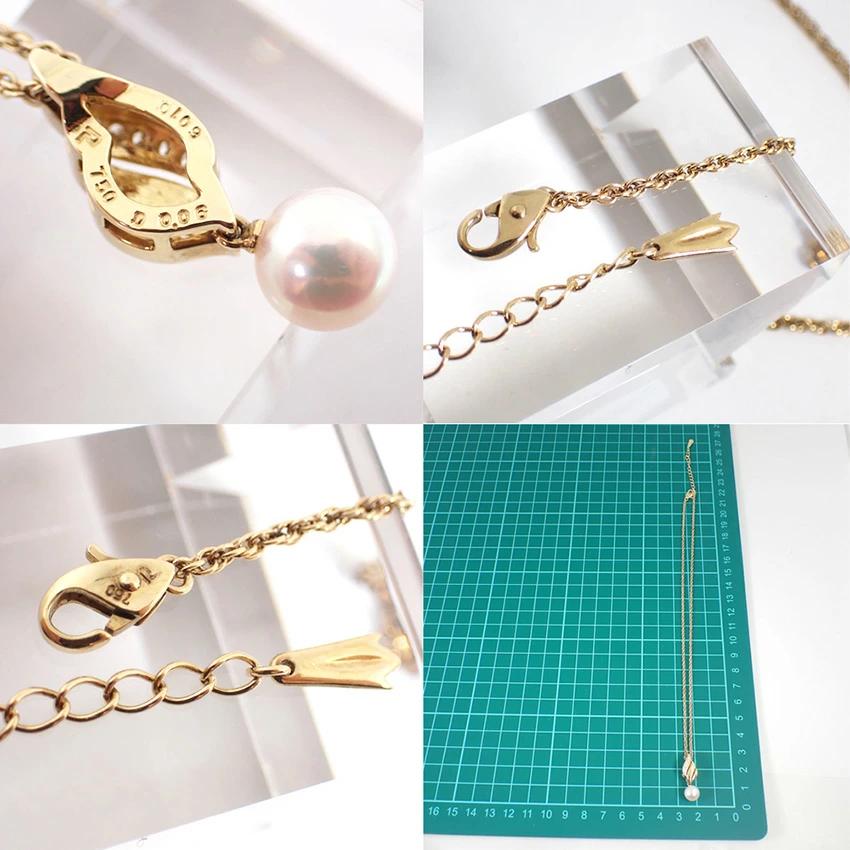 Product DetailsProduct Rank: AMaterial: 750 (18K Yellow Gold)Diamond: 0.06ctAkoya Pearl: 8.0mmWeight: Approximately 7.8gTotal Length: Approximately 45cm (with 5cm adjuster)Accessories: POLA box, warranty card, etc.Product DetailsThis Akoya pearl pendant necklace features a beautiful pink luster and a high-quality diamond as the focal point.Brand new and polished.Product Rank: [N] New or equivalent, in very good condition with no defects. [S] Almost no defects and in good condition. [A] Lightly used. [B] Signs of use. [C] Very heavy wear, obvious damage or stains, in need of repair. ____________________________Condition: Used
