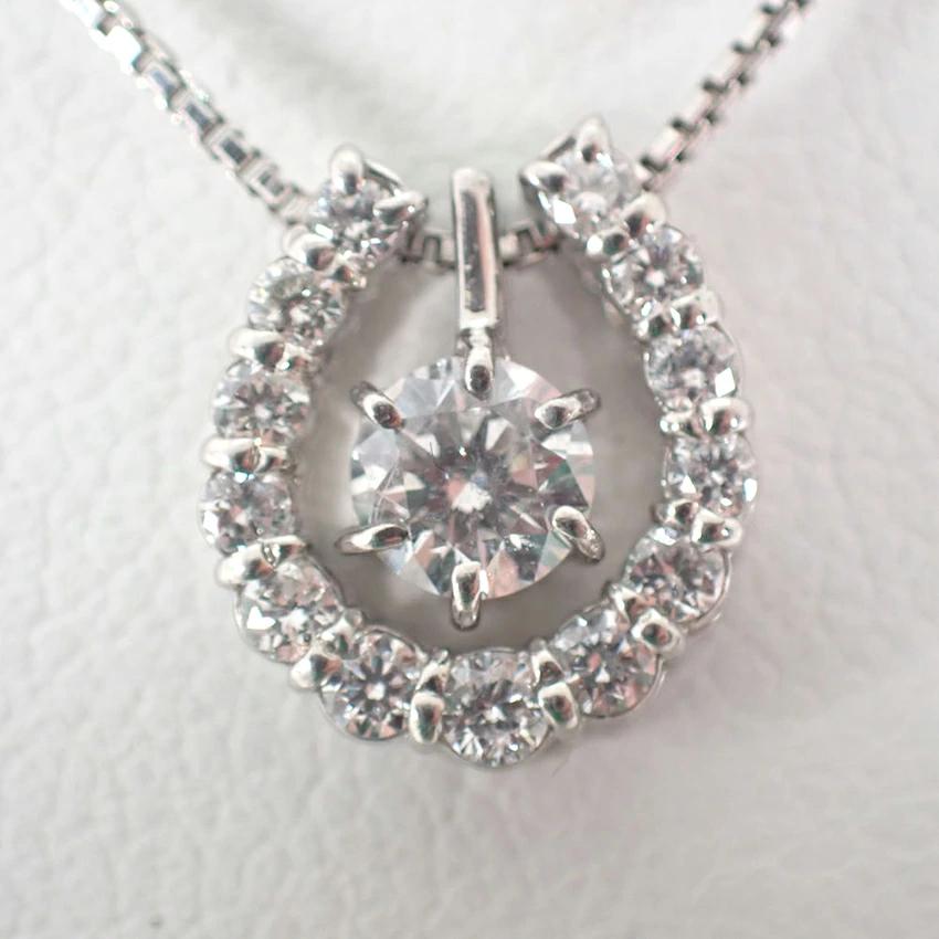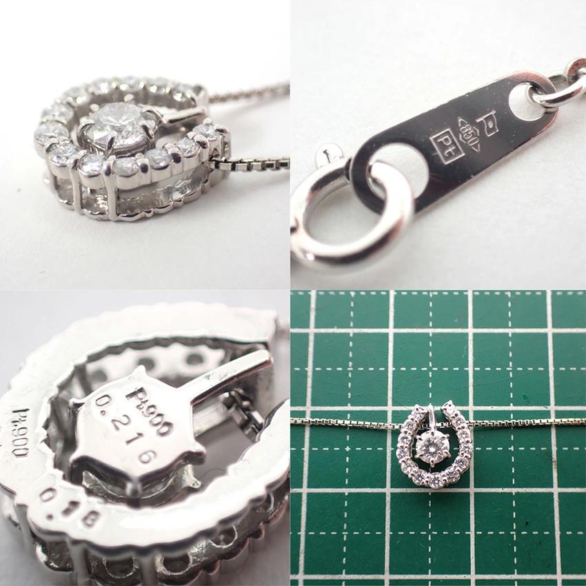 Product DetailsProduct Rank: AMaterial: Pt900/Pt850 (Platinum)Gemstones: Diamond: 0.216ct, Diamond: 0.18ctWeight: Approximately 3.7gChain: 40.5cm (4cm adjuster)Top: Approximately 10.1cm high, 9.2cm wide