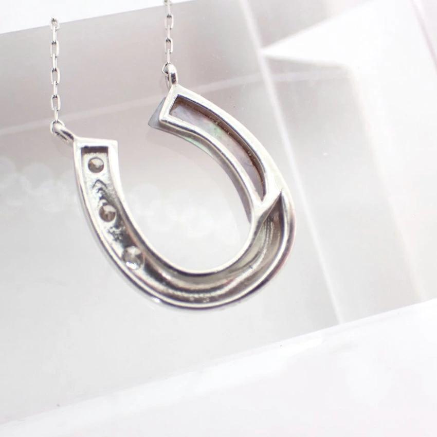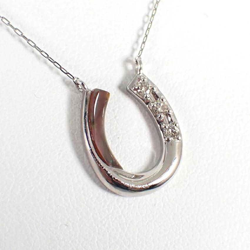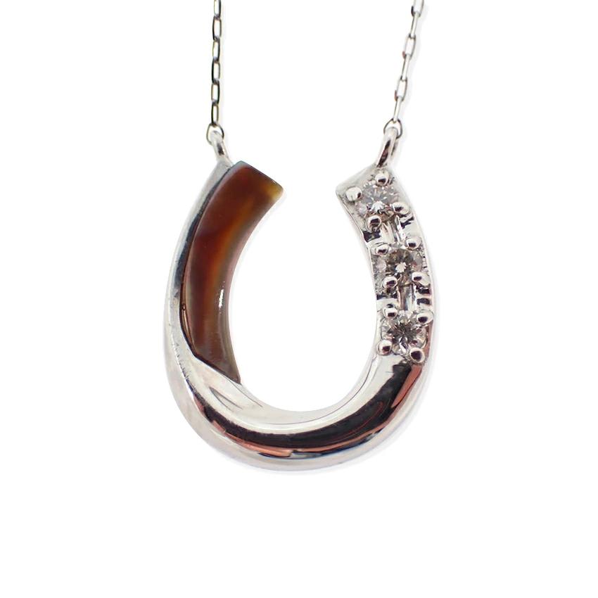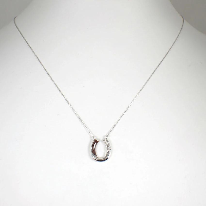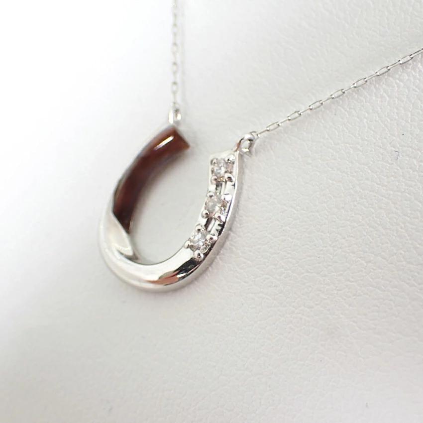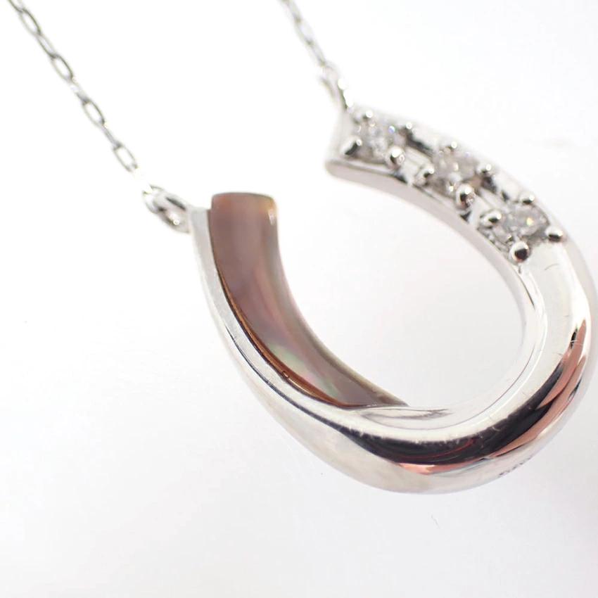[Pre-owned] Pt900 Diamond Shell Horseshoe Pendant/Necklace/j173-5