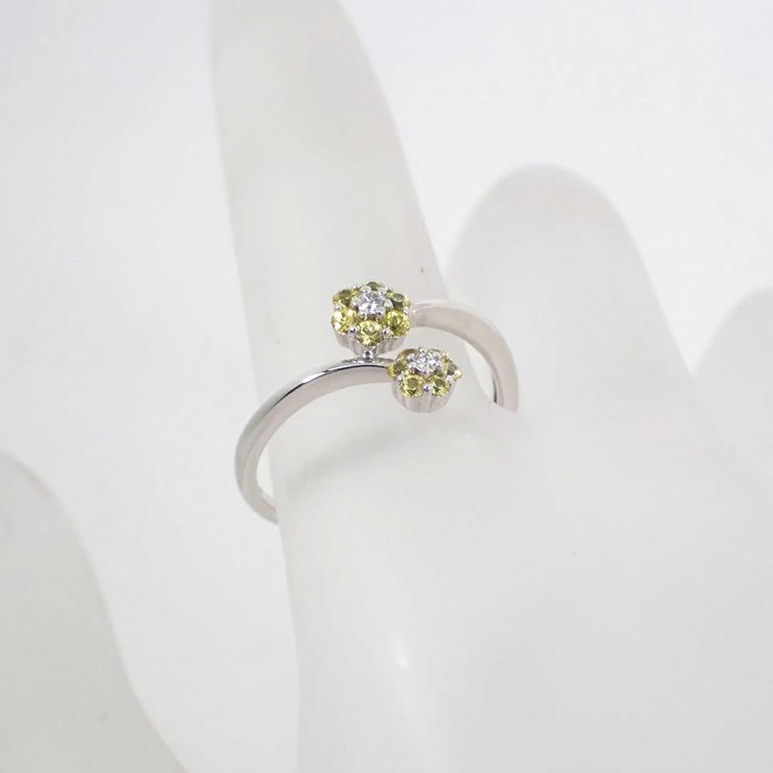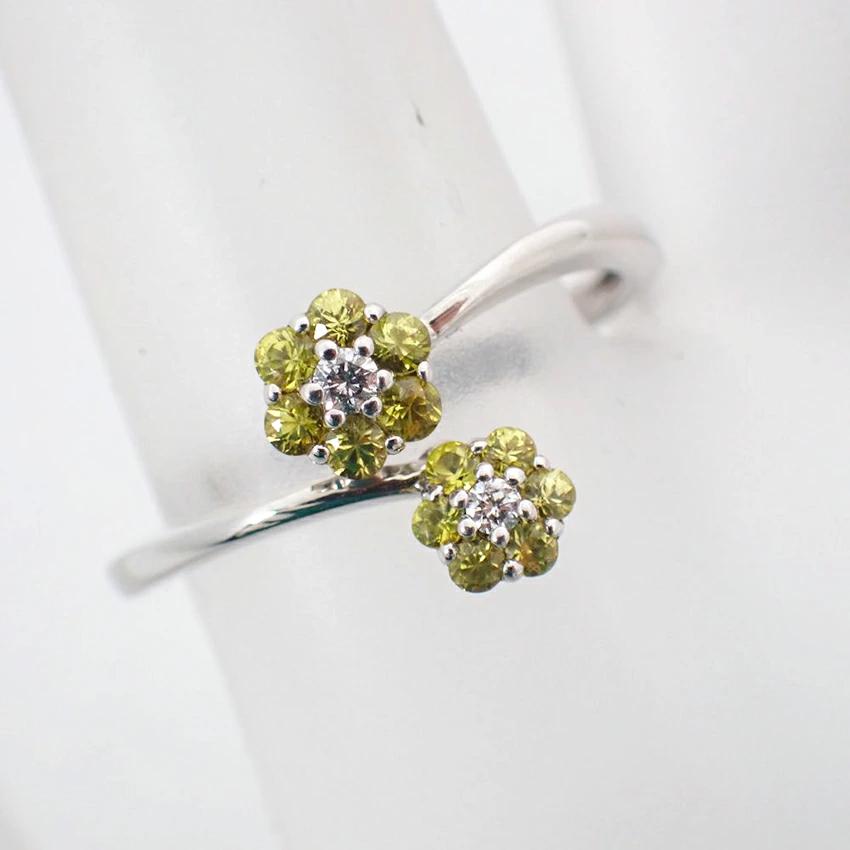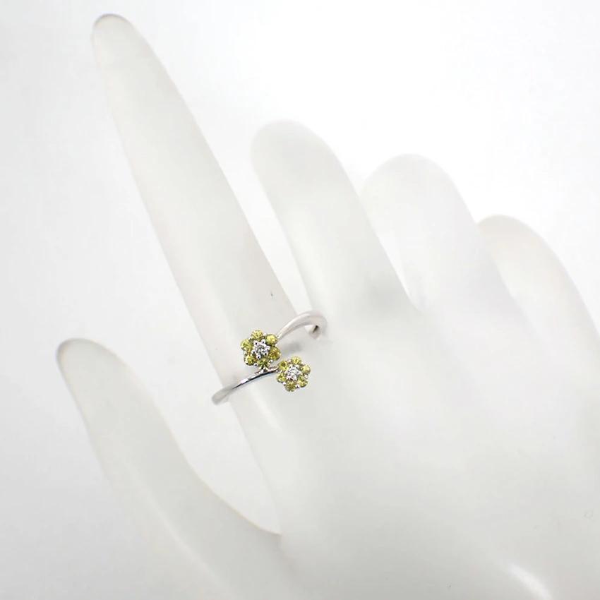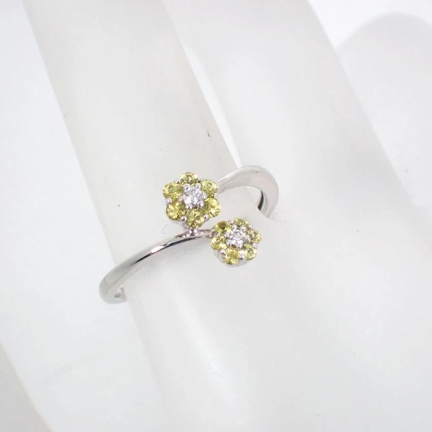 [Pre-owned] VENDOME K18WG Diamond/Peridot Flower Ring/Size 11/j95-1