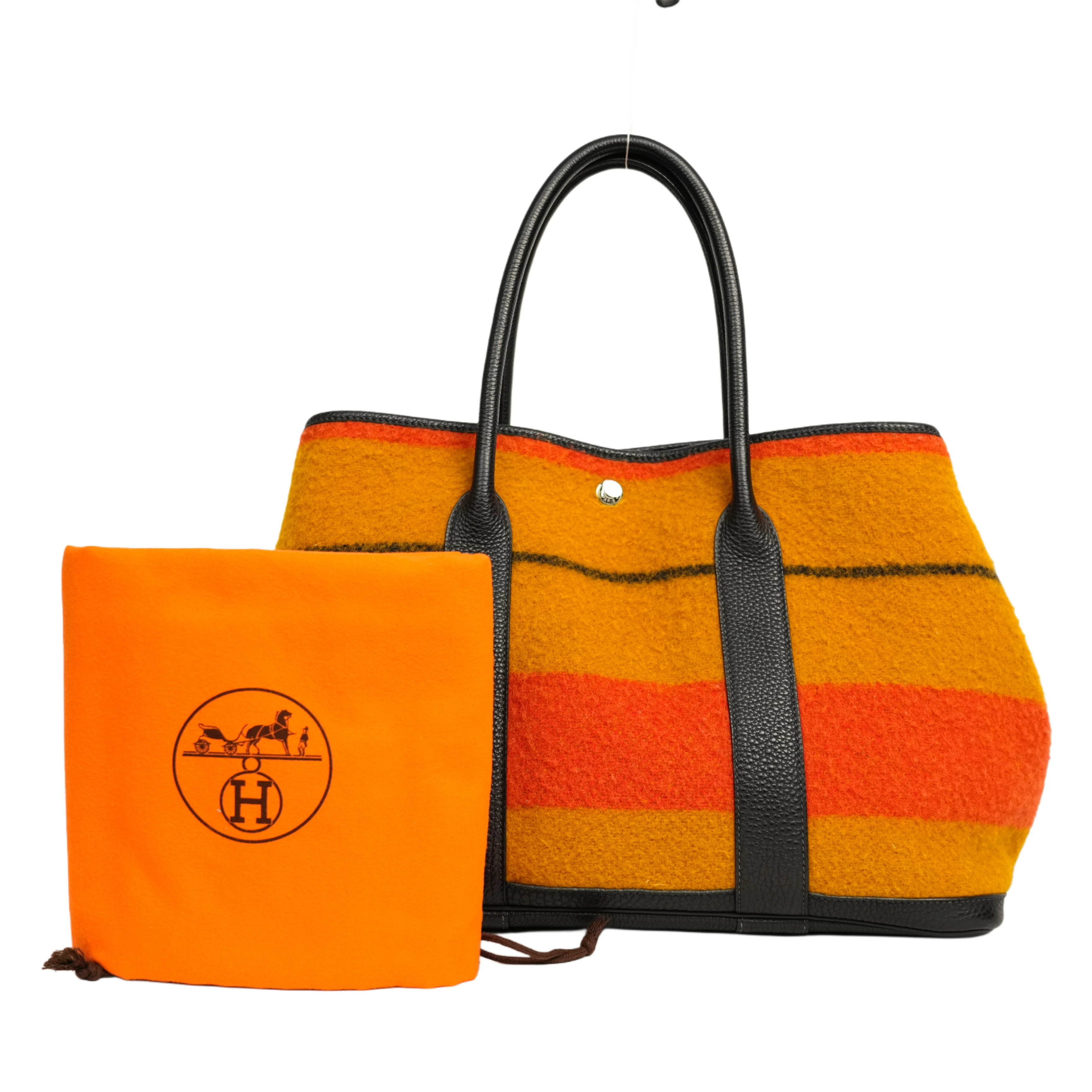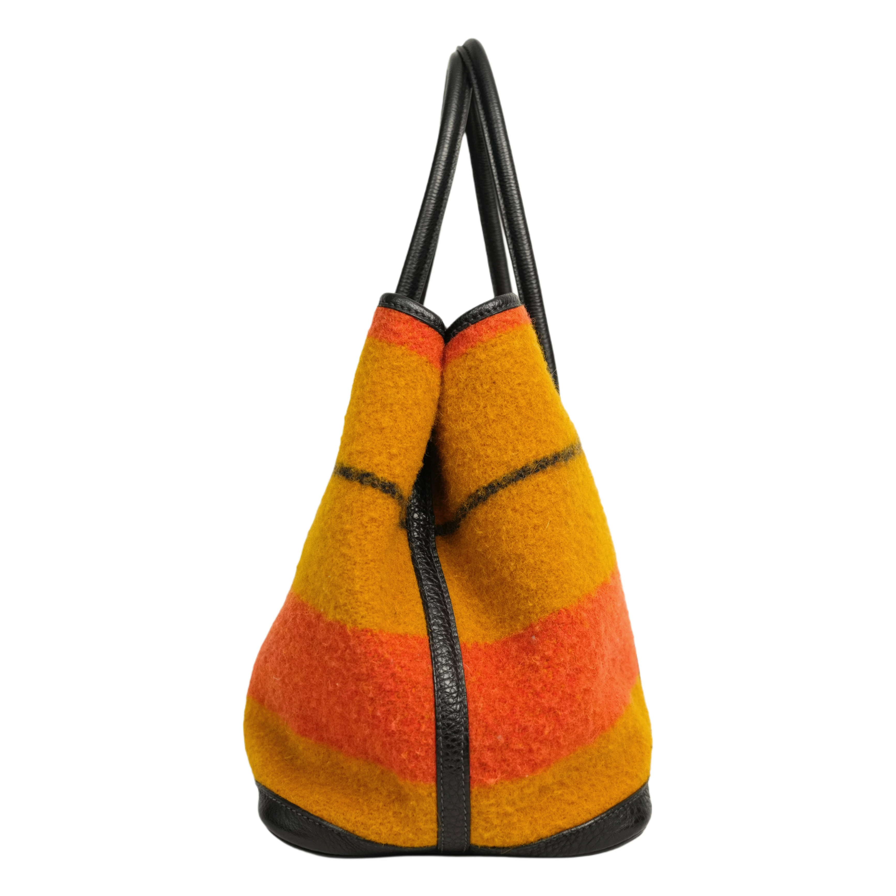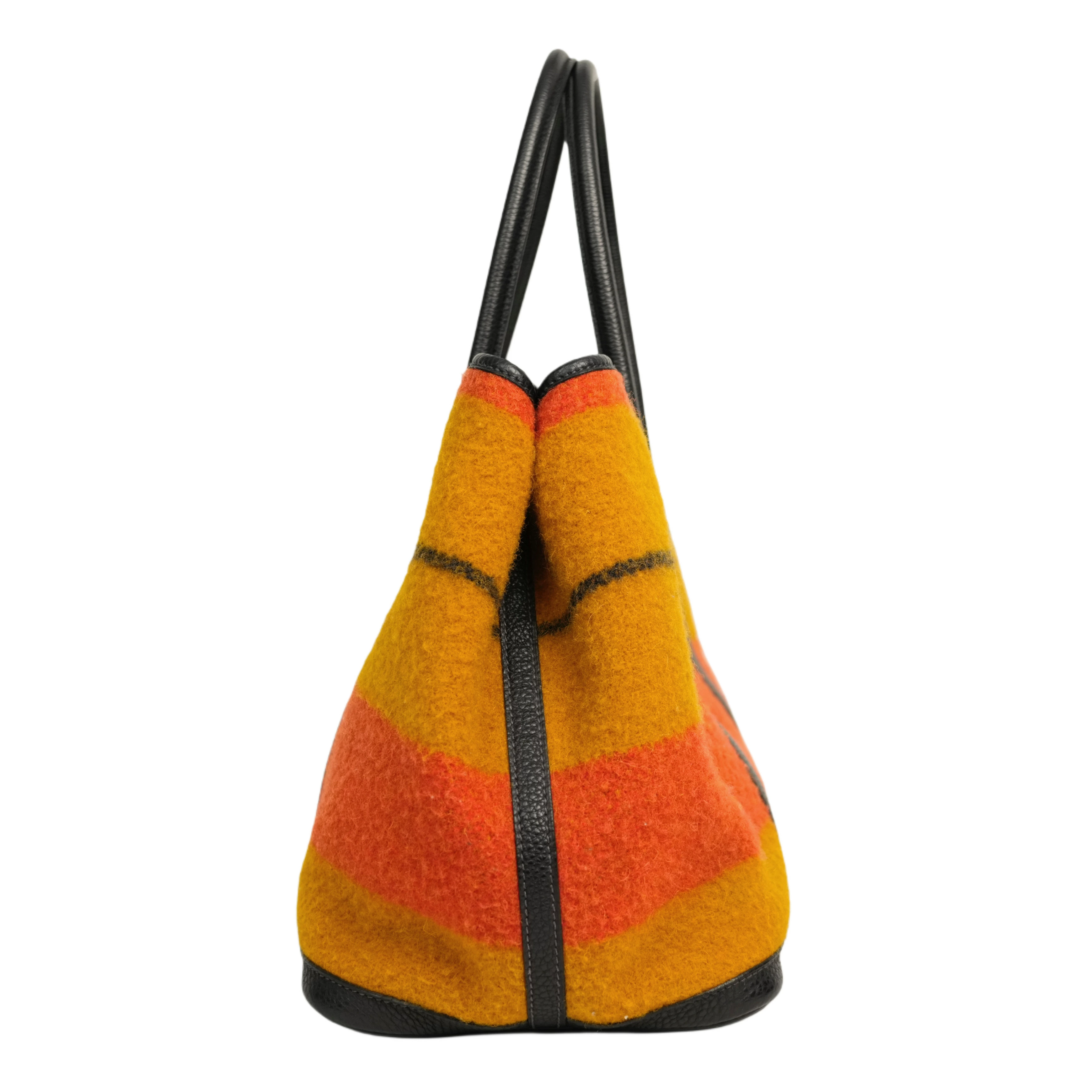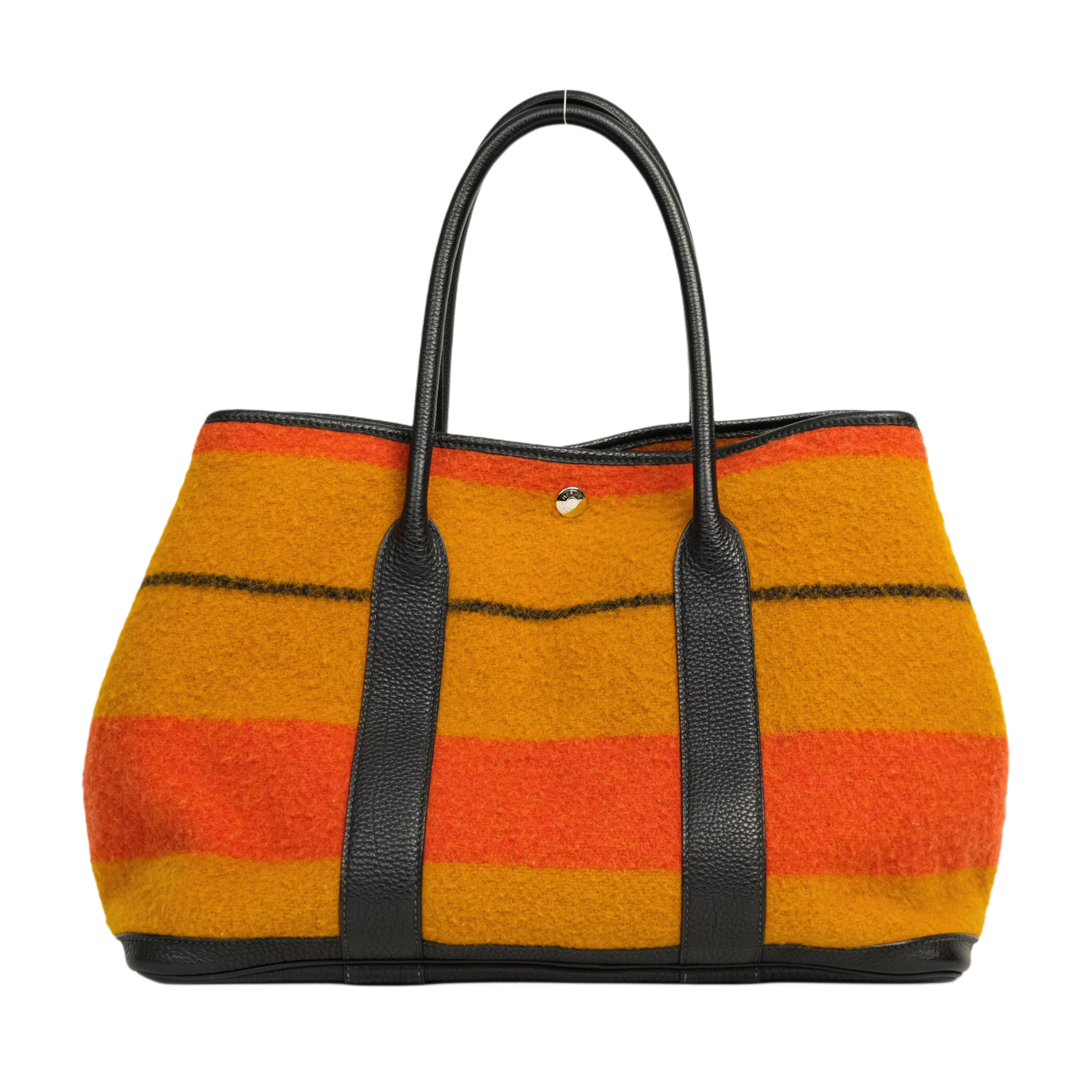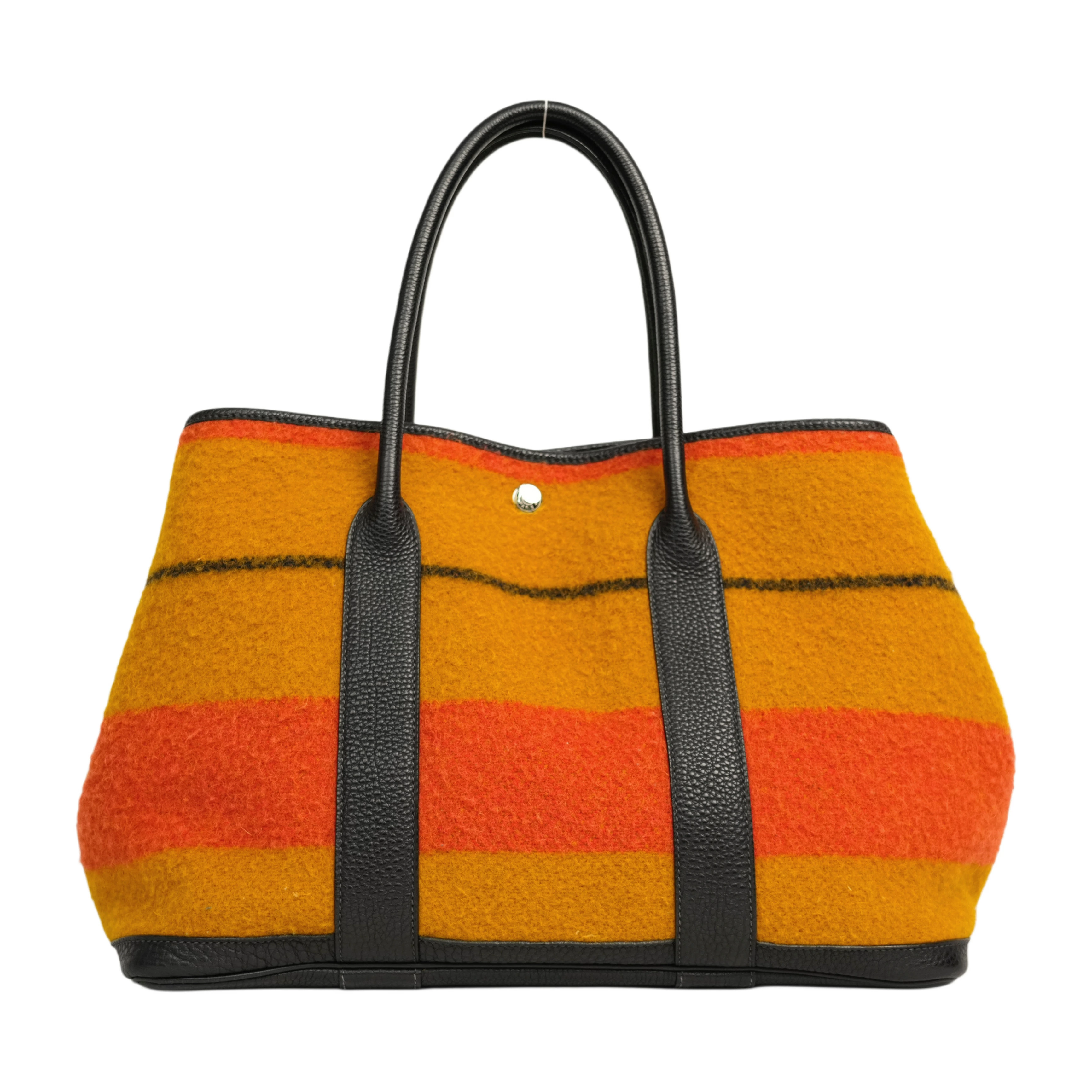 【中古・VINTAGE】 HERMES エルメス ガーデンパーティPM ロカバール トートバッグ ダークネイビー イエロー オレンジ レザー ヴィンテージ Garden Party Rocabar Tote Bag