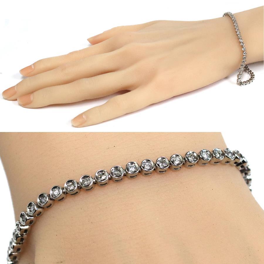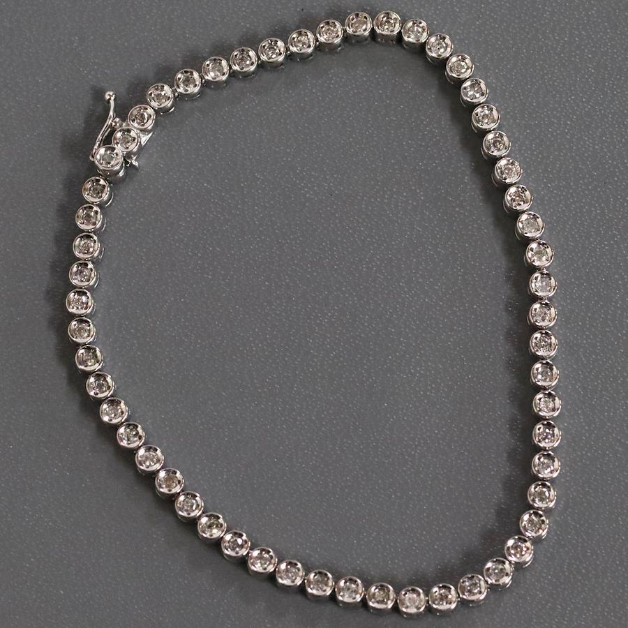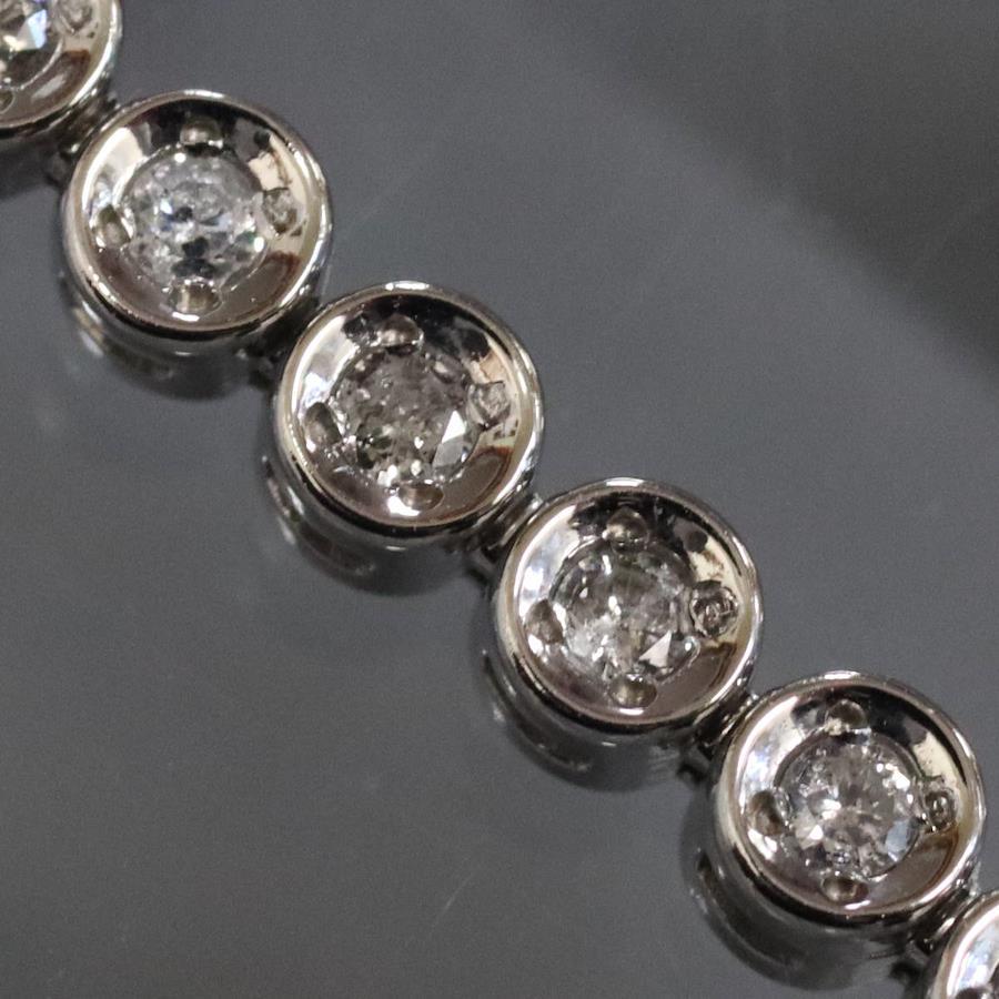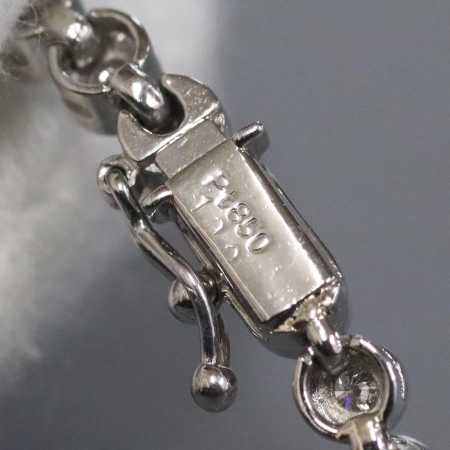 Pt850ダイヤモンドテニスブレスレットの中古品です。ダイヤモンドはどの石にもカーボン状のインクルージョンなどが多くあり、肉眼で見えるものもあります。プラチナがきらきらと輝くため、華やかに見えます。腕回りは約19cmです。地金には小傷があります。+---+---+---+---+---+。{状態}B{素材}Pt850,ダイヤモンド{サイズ}約19cm。幅約3mm。{その他}D1.00ct,13.7g。{付属品}なし(サービス箱をお付けします){お問合せ商品番号}25106035+---+---+---+---+---+。