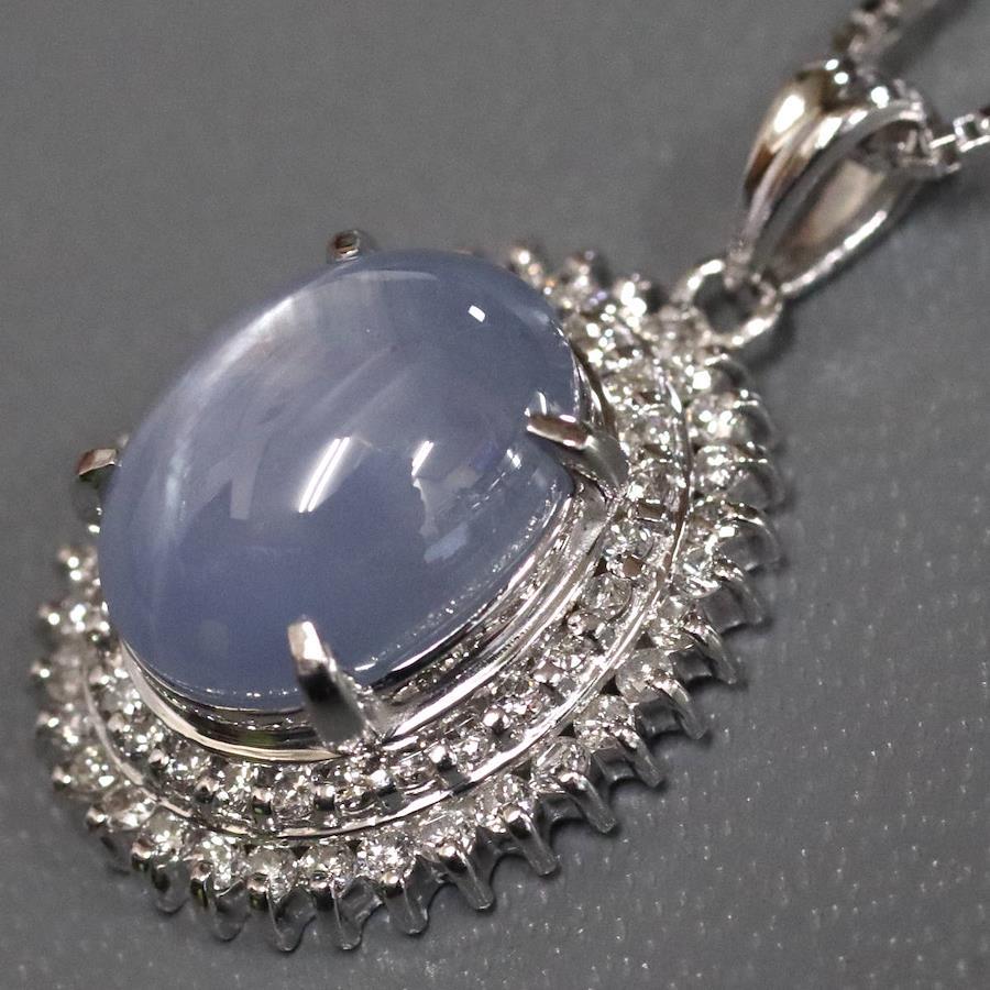 Pt850/900スターサファイアダイヤモンドペンダントの中古品です。スターサファイアは強い光が当たると6条の光が出ます。表面にわずかに傷があり、ややインクルージョンがあります。ダイヤモンドはサファイアを囲んでセットされており、照りがあります。地金には小傷があります。+---+---+---+---+---+。{状態}AB{素材}トップPt900,スターサファイア,ダイヤモンドチェーンPt850{サイズ}トップ約W15mm × H23mm(バチカン含む)チェーン長約47cm。{その他}S6.96ct,D0.48ct,10.6g。{付属品}なし(サービス箱をお付けします){お問合せ商品番号}26013068+---+---+---+---+---+。
