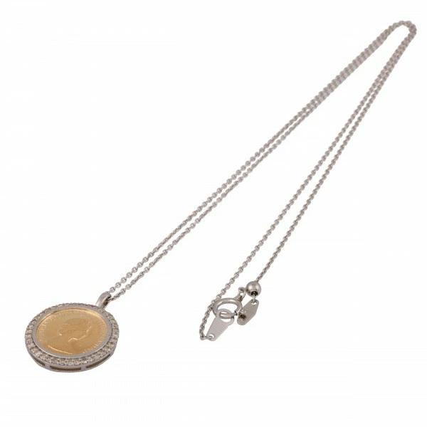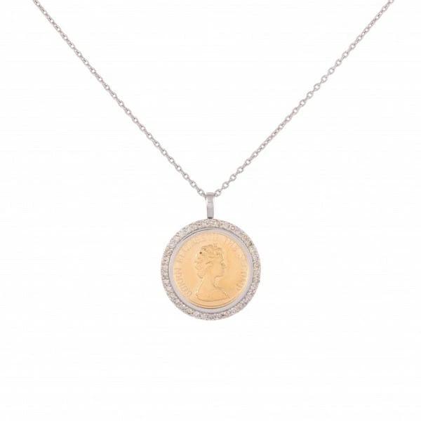 PT850 PT950 K18 Diamond Coin Necklace Embossed Coin