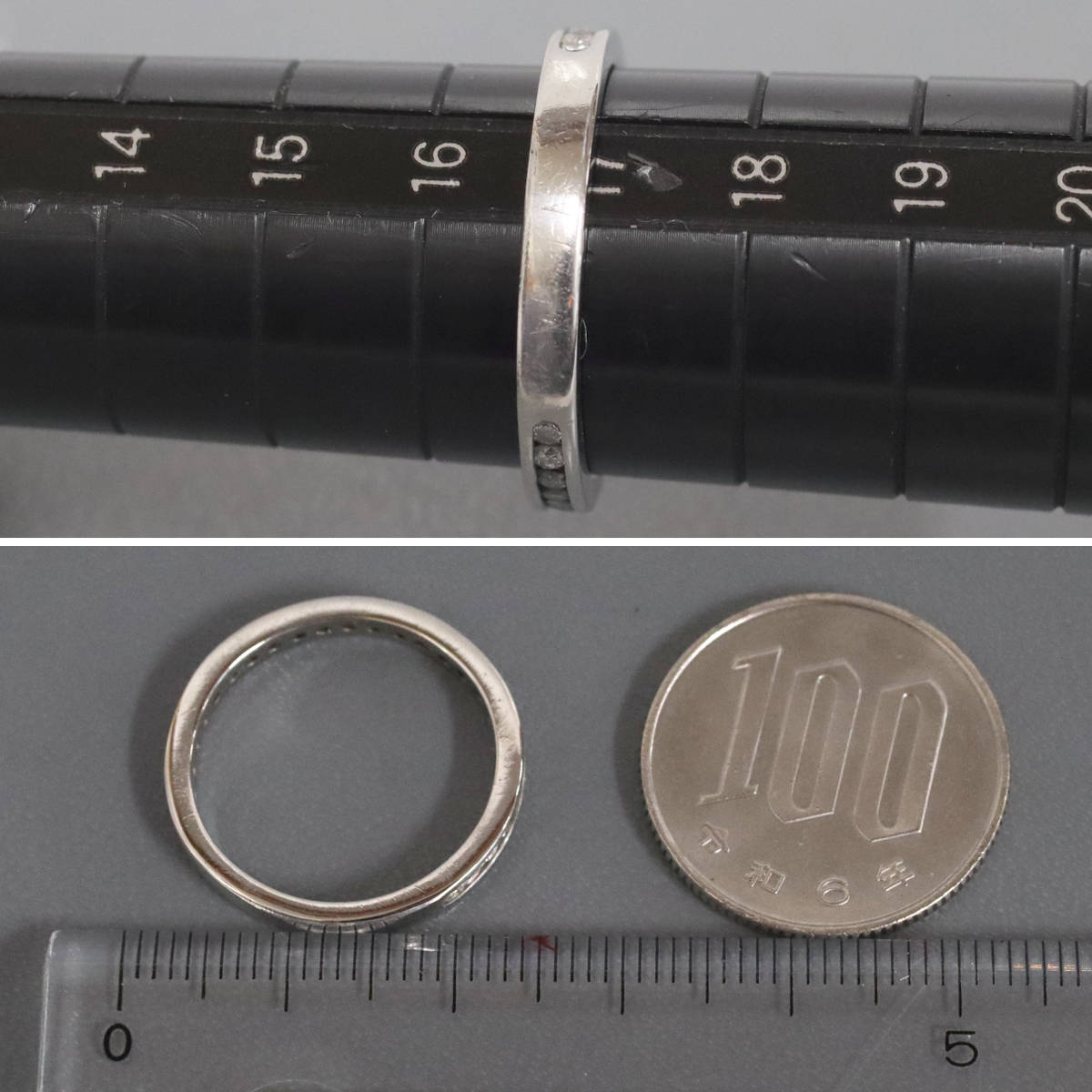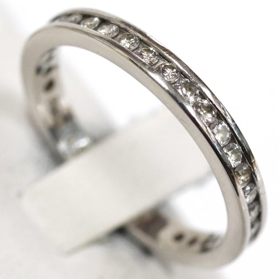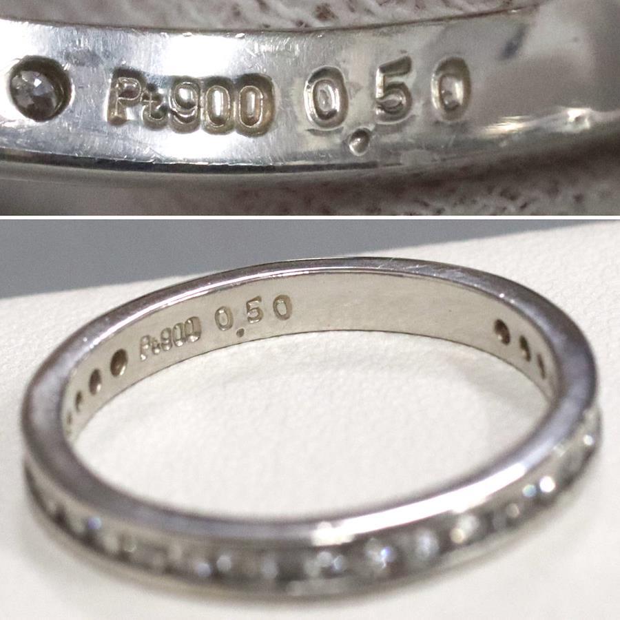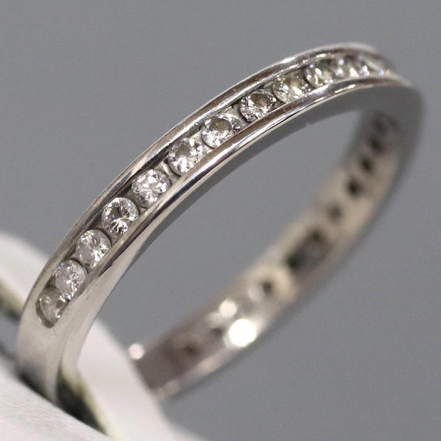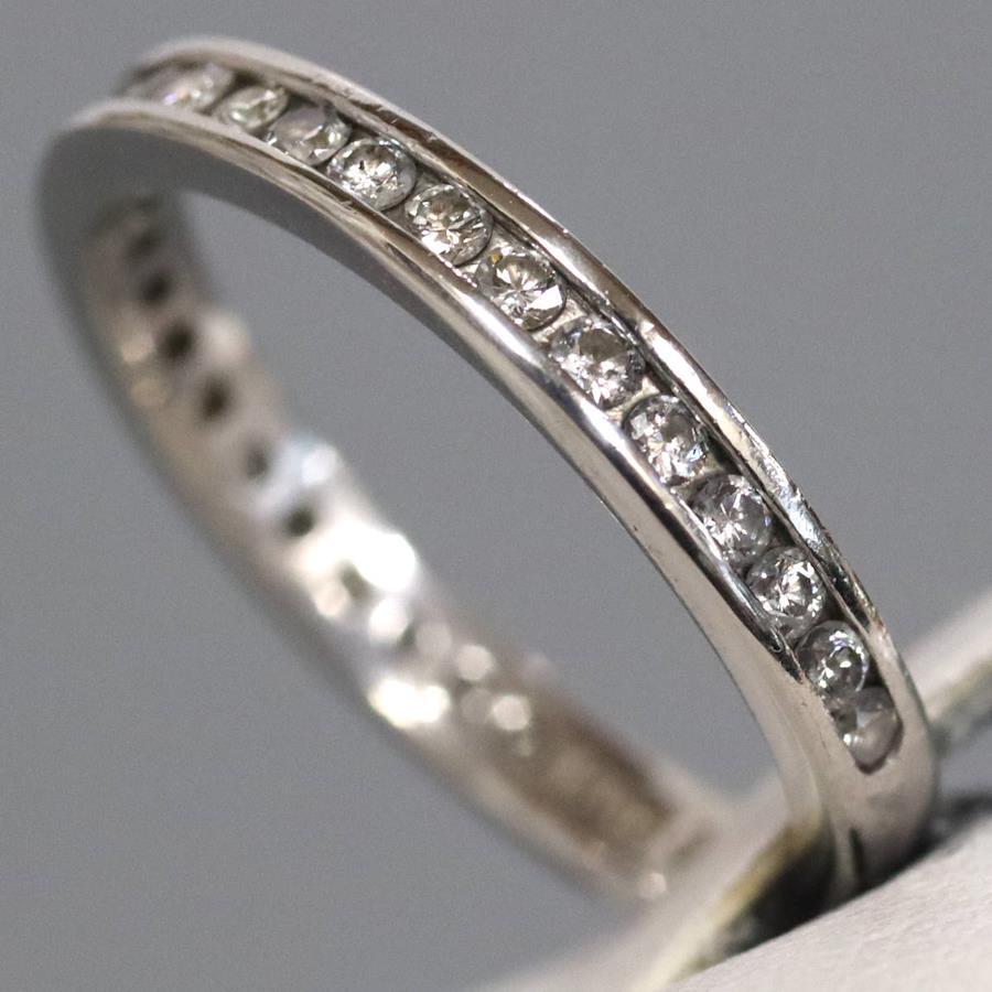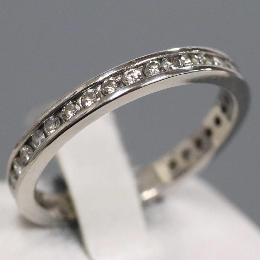 Pt900ダイヤモンドリングの中古品です。ダイヤモンドがリングの0.7周ほどセットされたエタニティリングです。ダイヤモンドはややインクルージョンがありますが、肉眼では見えません。ダイヤモンドは無色に近い色味で、照りがあります。地金には全体的に傷があります。+---+---+---+---+---+。{状態}B{素材}Pt900,ダイヤモンド{サイズ}当店計測約#16.5{リング幅}約2mm。{その他}D0.50ct,4.5g。{付属品}なし(サービス箱をお付けします){お問合せ商品番号}25093064+---+---+---+---+---+。