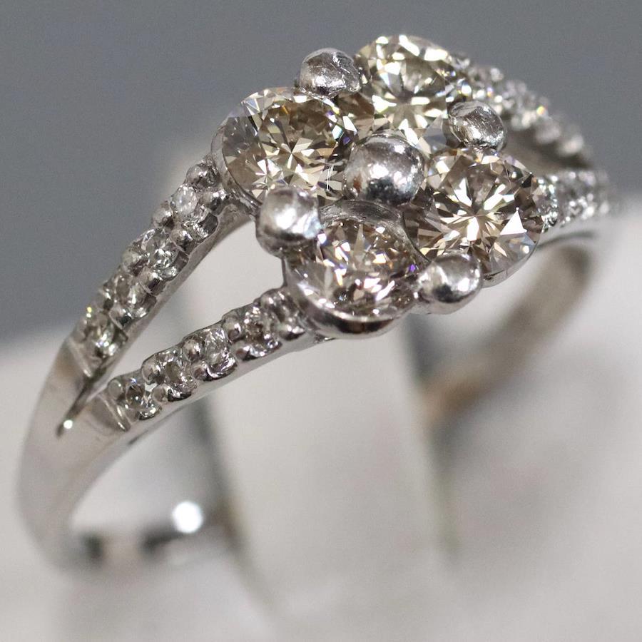 中央の4石のダイヤモンドはわずかにブラウンがかった色味です。
