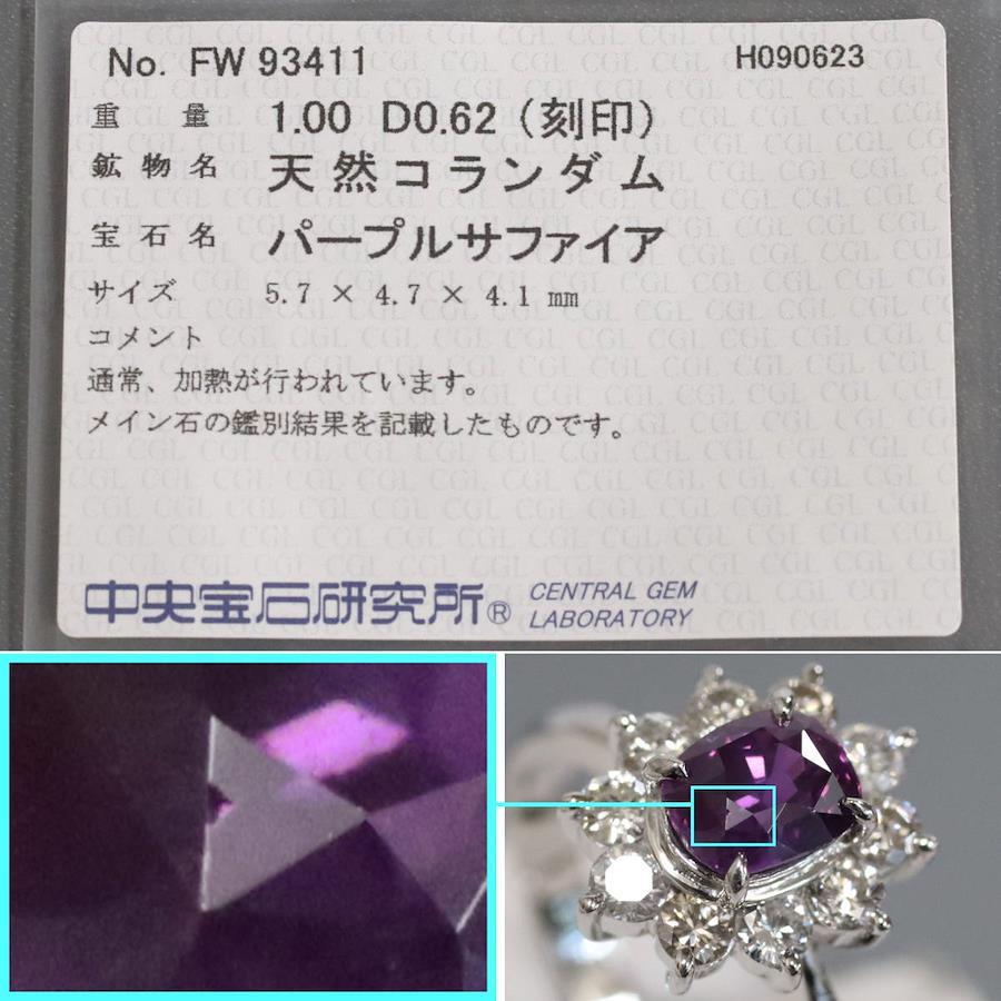 天然コランダムのパープルサファイアと鑑別されたソーティングが付属します。