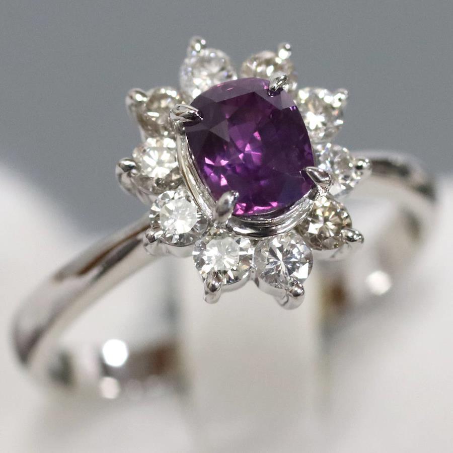 Pt900パープルサファイアダイヤモンドリングの中古品です。
